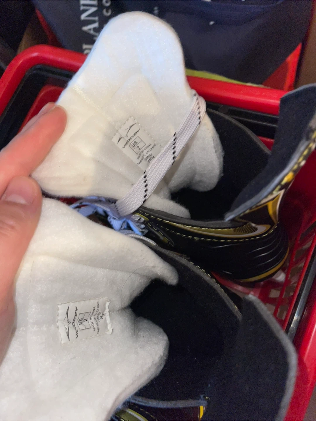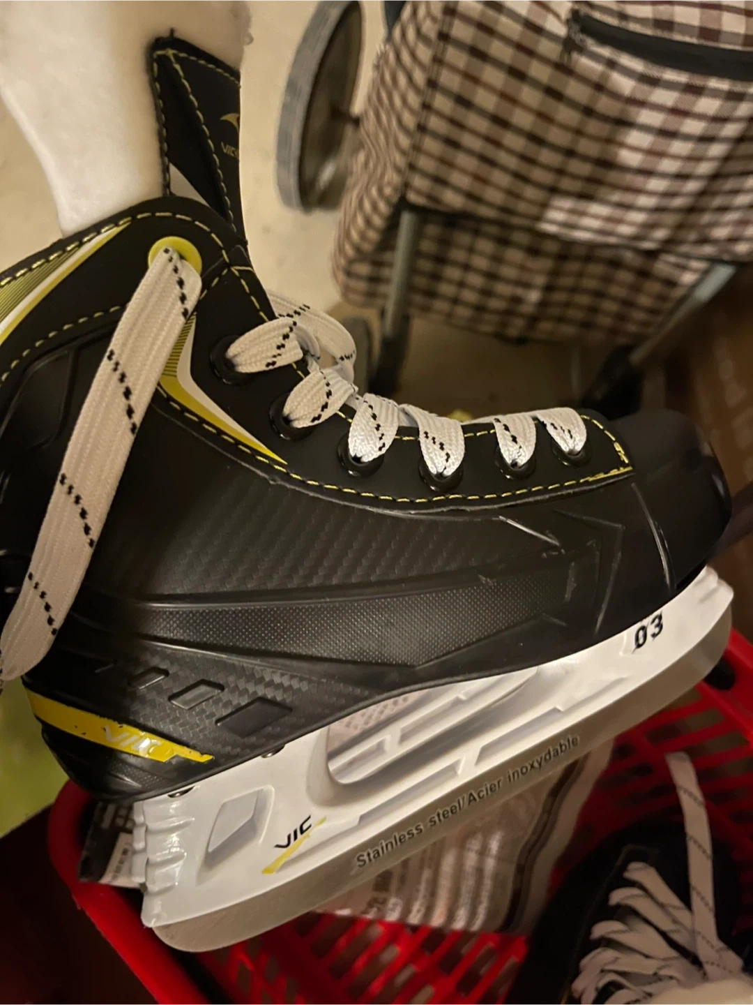 Selling hockey skates in youth size US 1 and 2. They're designed for performance and comfort on the ice. The stainless steel blades offer good durability. These skates are great for young players just starting out in the sport.