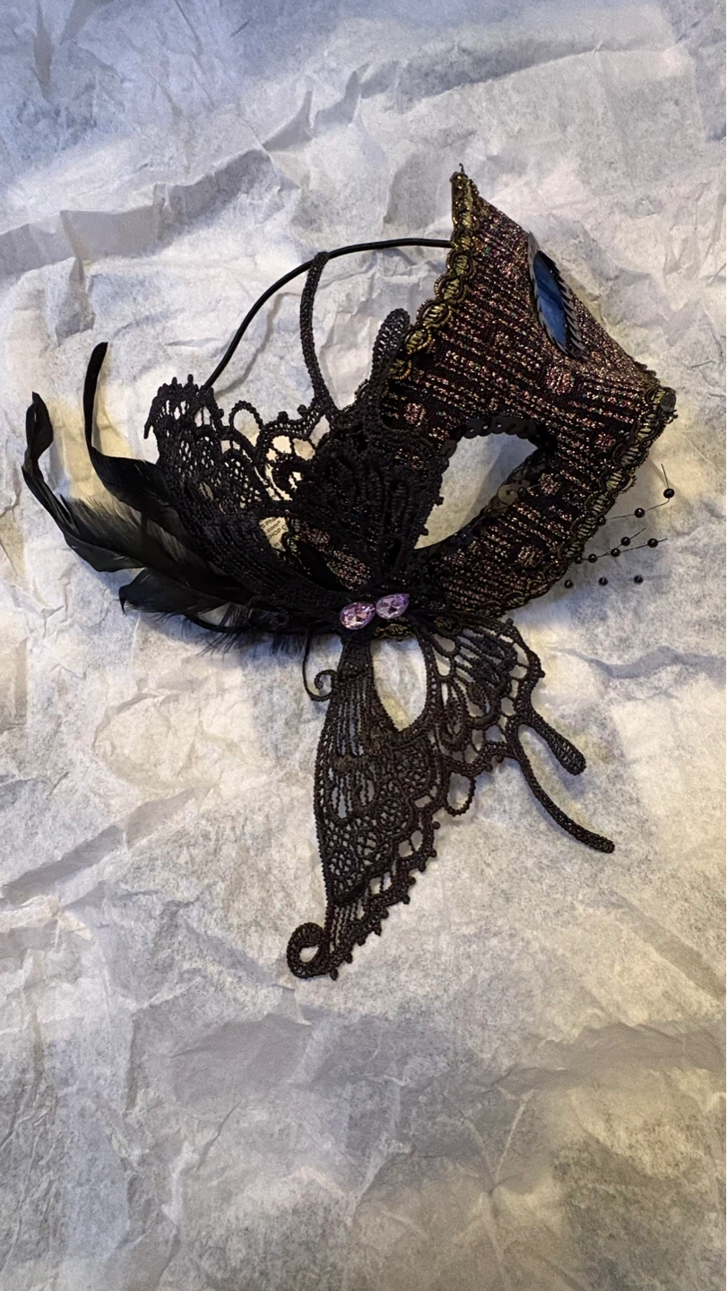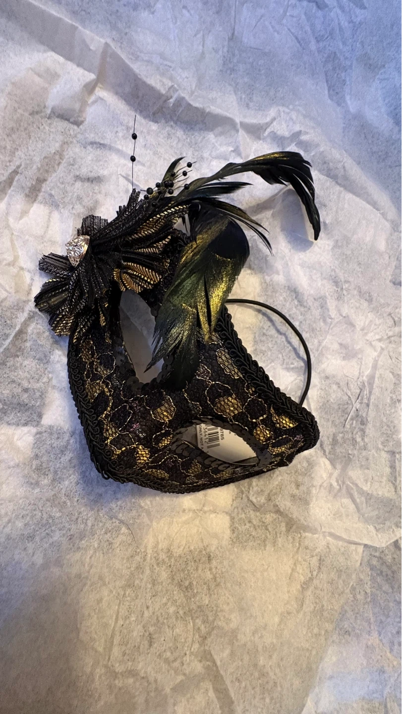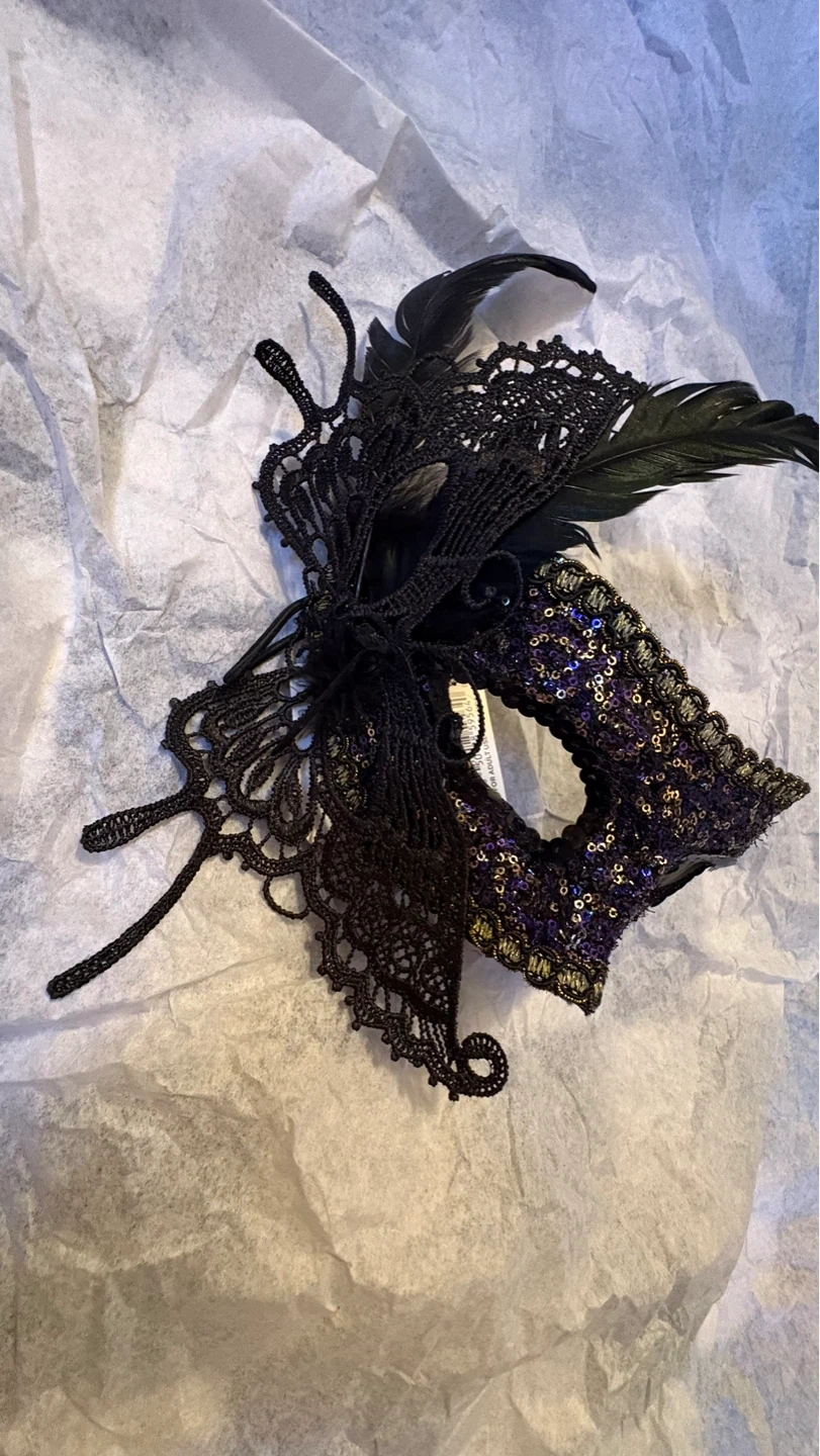 These decorative masquerade masks are embellished with feathers, sequins, and intricate lace details. They feature elastic straps for a secure fit. Available in various designs and colors. $4 each