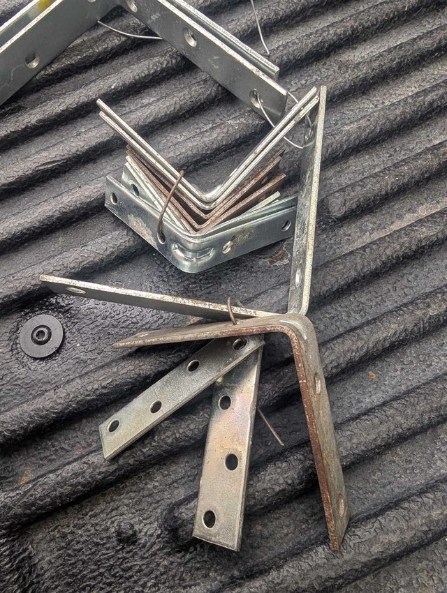 New and Used metal brackets in various sizes available for your projects. These brackets are sturdy and ready to be put to work. If the ad is up, then yes, the brackets are still available!