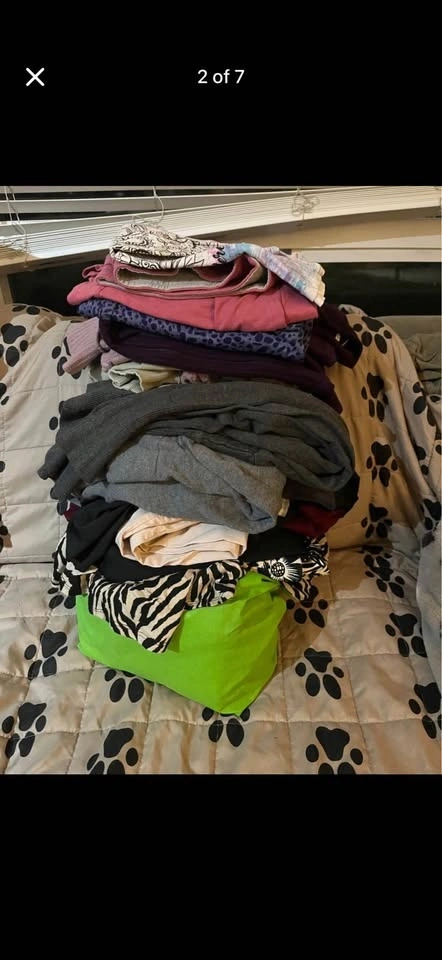 Lot of 23 women's clothing items including: 1 Jacket, 2 Dresses, 1 Shorts, 1 Skirt, 2 pairs of new Socks, 3 Capris, 1 Pants, 1 PJ crops, 1 Sleeveless top, 3 Tops, and 7 Long sleeve tops. Brands include Carole Hochman, American Eagle, Zenana, Reitmans, Ricki's, Old Navy, Joe Fresh, and more. All items have been washed, bagged, and are ready to go. Pet friendly home, non-smoking. Located near 252 St in Maple Ridge. Porch pickup available. CASH ONLY.