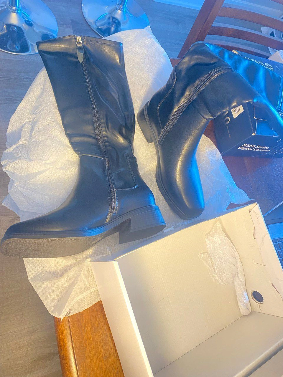 Description: DREAM PAIRS Women's Knee High Boots Square Toe Motorcycle Boots Chunky Low Heel Fashion Buckles Biker Riding Boots with Side Zipper