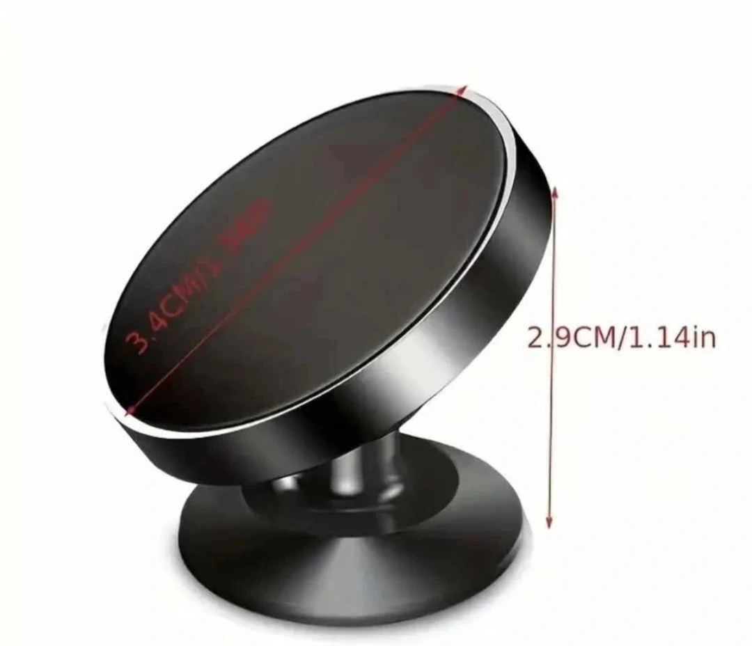 This compact magnetic phone mount is perfect for your car dashboard. It includes a base mount and a metal plate for your phone. The mount is 3.4cm wide and 2.9cm tall. It's designed for easy, one-handed operation!