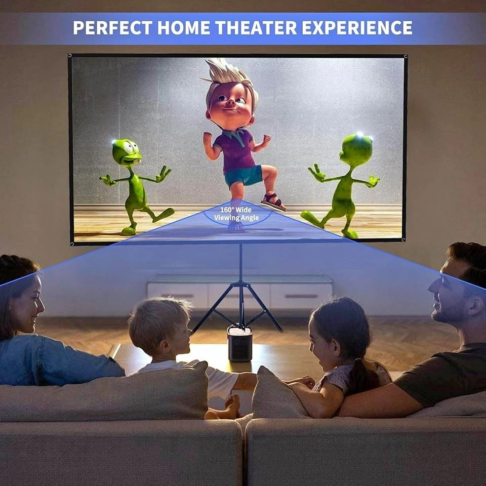 This 100-inch projection screen has a 16:9 aspect ratio, a 160-degree viewing angle, and a 1.2x gain for great color reproduction. The sturdy tripod stand is foldable and telescopic to adjust height, with four aluminum tubes for a stable, flat, and wrinkle-free screen surface. All parts fit into a carrying bag for easy portability and quick assembly/disassembly. You can set it up anywhere like the living room, backyard, or classroom for movie nights or presentations. Enjoy a large projected image with family or friends!