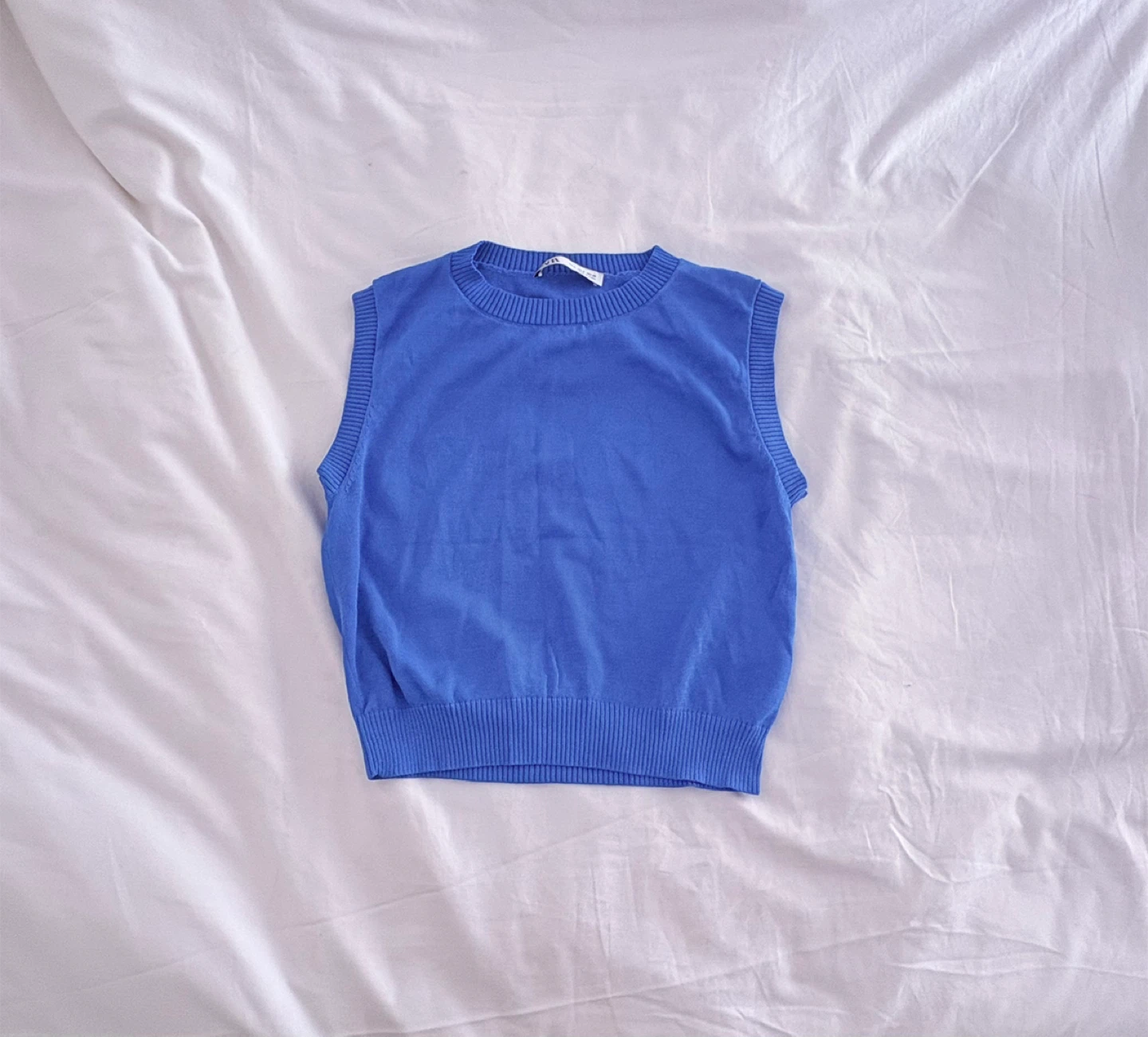 Selling a Zara knit vest in a lovely blue colour! It's a size small and in great condition. Perfect for layering or wearing on its own
