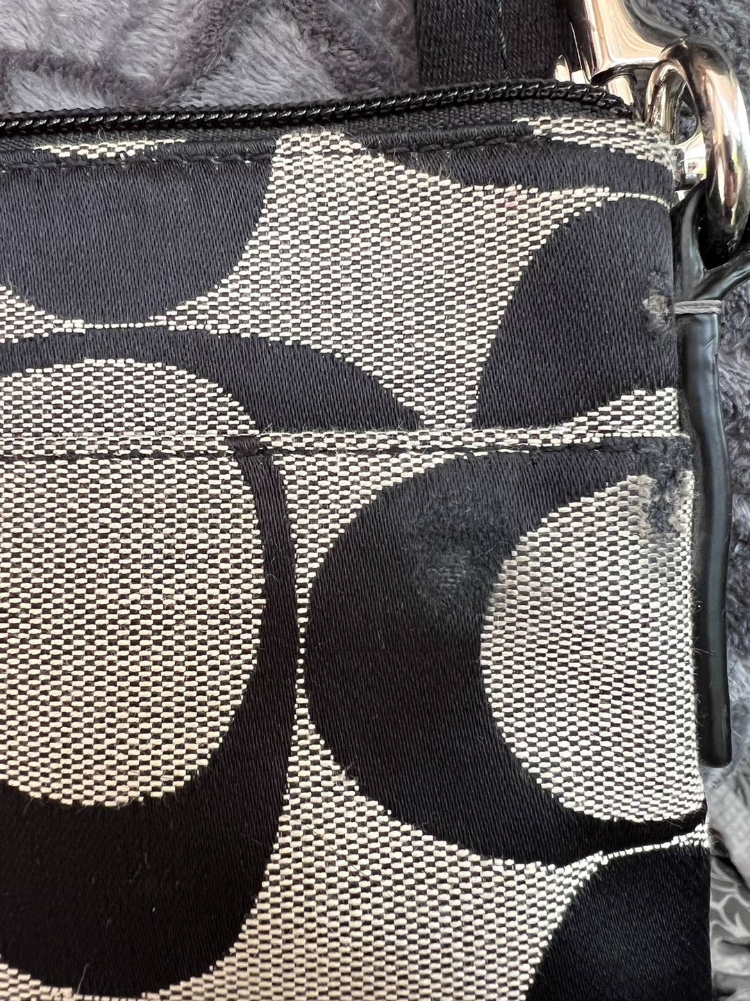 Coach Handbag Purse 43976 Swingpack Khaki Black Signature Stripe Leather Bag