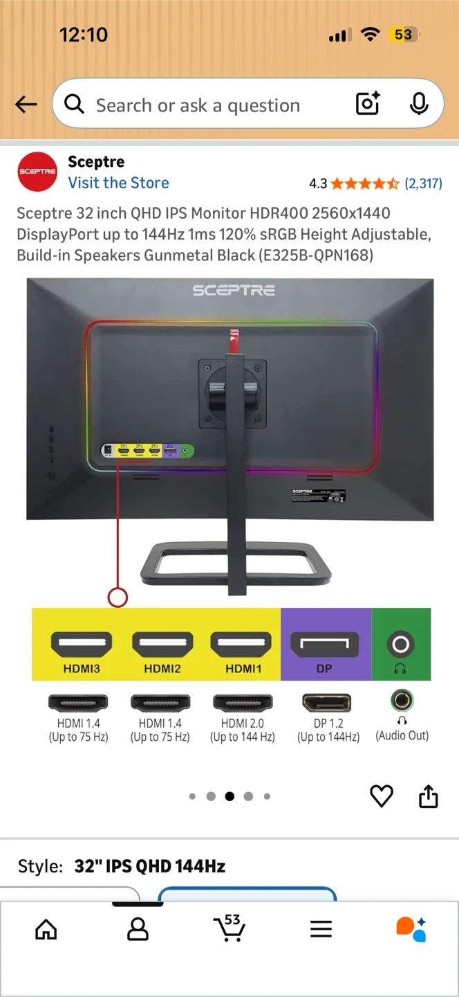 Sceptre 32 inch QHD IPS Monitor HDR400 2560x1440 DisplayPort up to 144Hz 1ms 120% sRGB Height Adjustable, Build-in Speakers Gunmetal Black (E325B-QPN168)