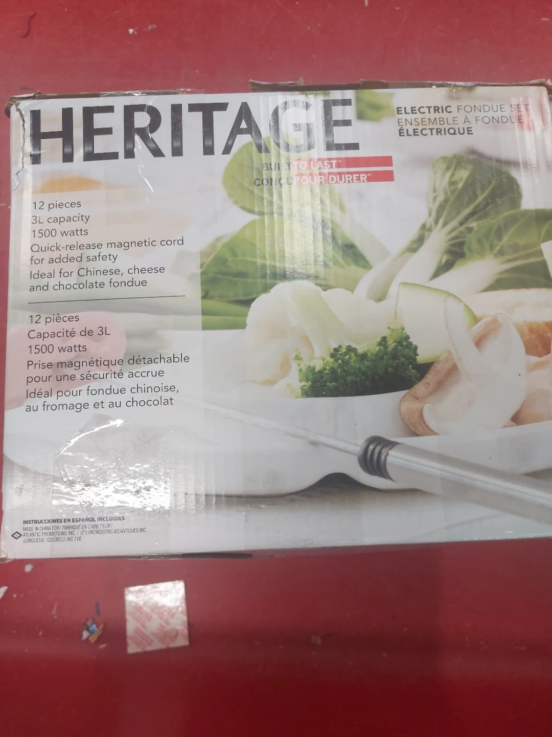This Heritage electric fondue set has a 3L capacity and 1500 watts. It features a quick-release magnetic cord for added safety. Ideal for Chinese, cheese, and chocolate fondue!