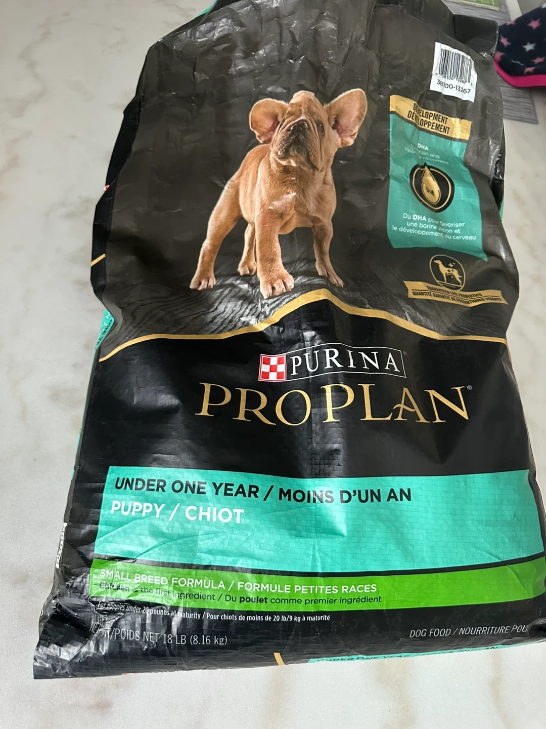 Selling a bag of Purina Pro Plan dry puppy food for small breeds (under 1 year).