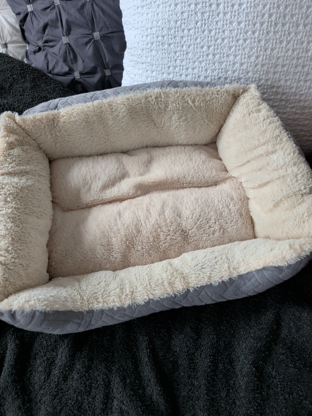 Grey plush pet bed