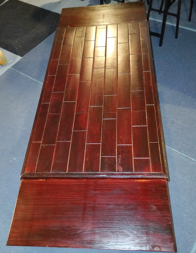 Burgundy Sained Wood Coffee Table Crank Height 2 Sleeves