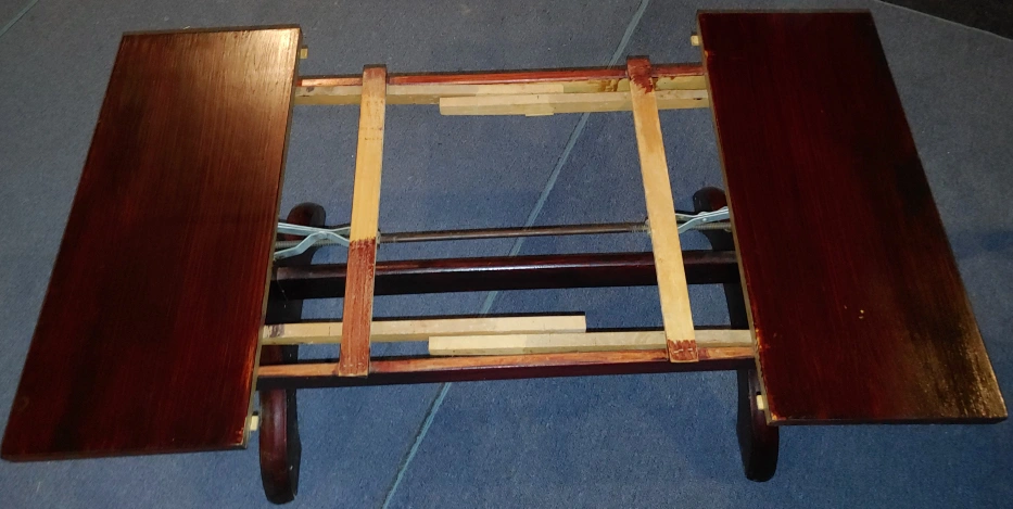 Dark Burgundy stained wood expabdable / adjustable coffee table.