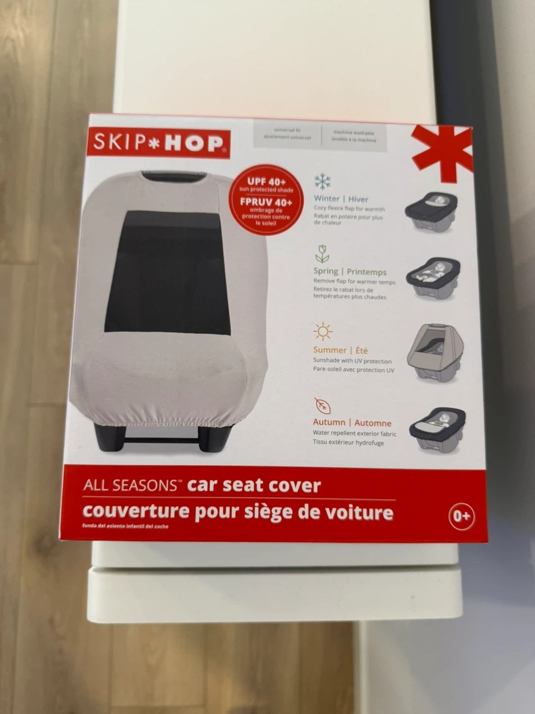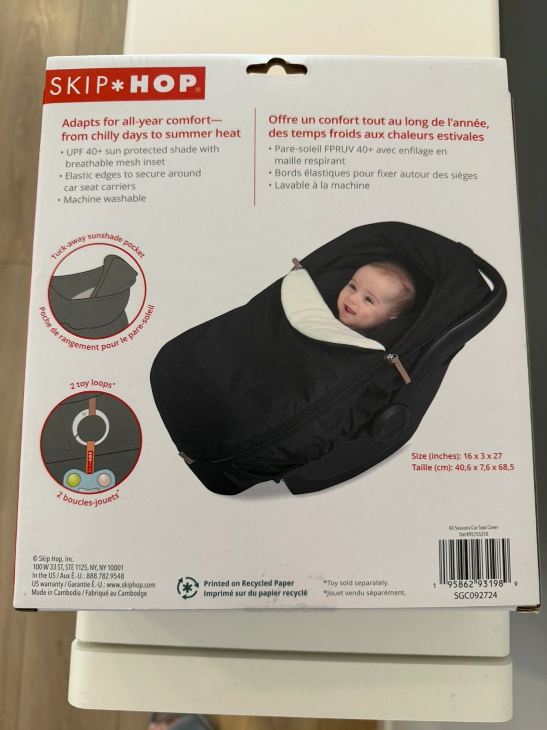 Keep your little one comfy all year round with this Skip Hop All Seasons car seat cover! It adapts for all-year comfort, from chilly days to summer heat.