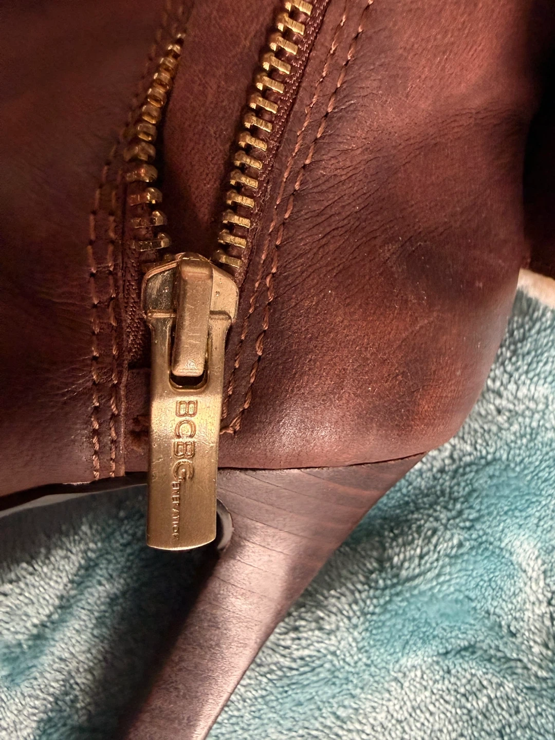 Stylish BCBGMaxAzria ankle boots with a rich brown leather exterior. These booties feature a cozy shearling lining and a fashionable platform heel. Side zipper for easy on and off!