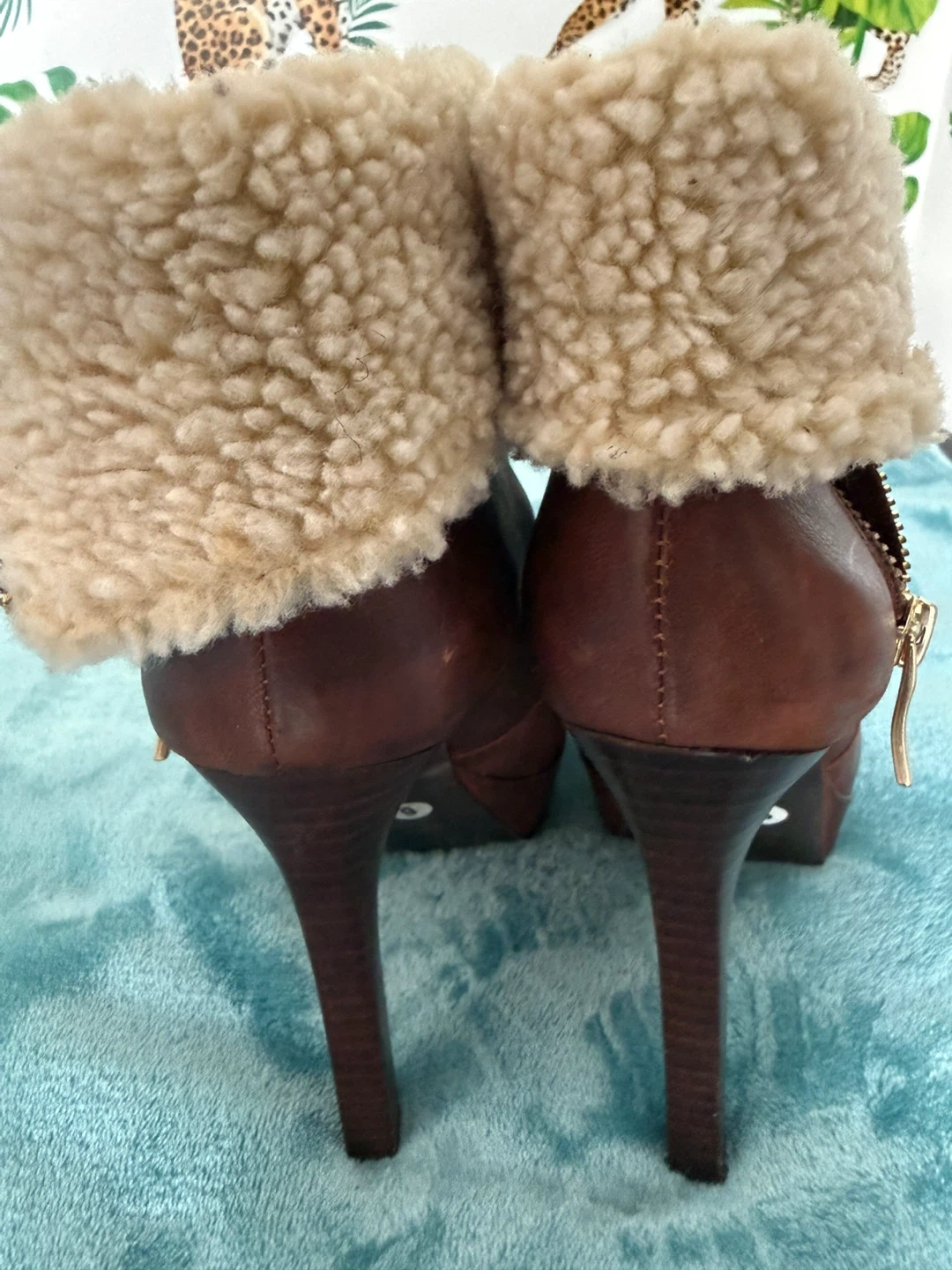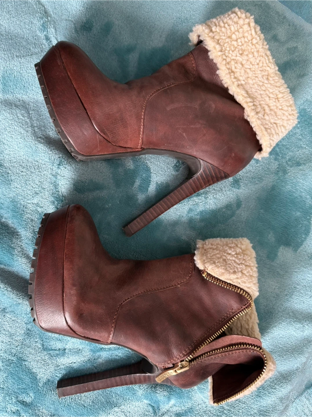 BCBGMaxAzria Brown Leather Shearling Lined Platform Booties