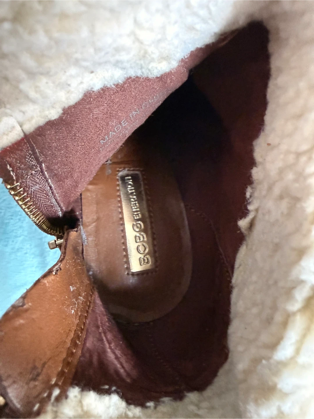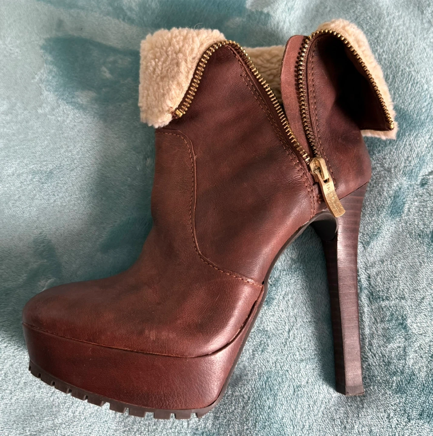 BCBGMaxAzria Brown Leather Shearling Lined Platform Booties