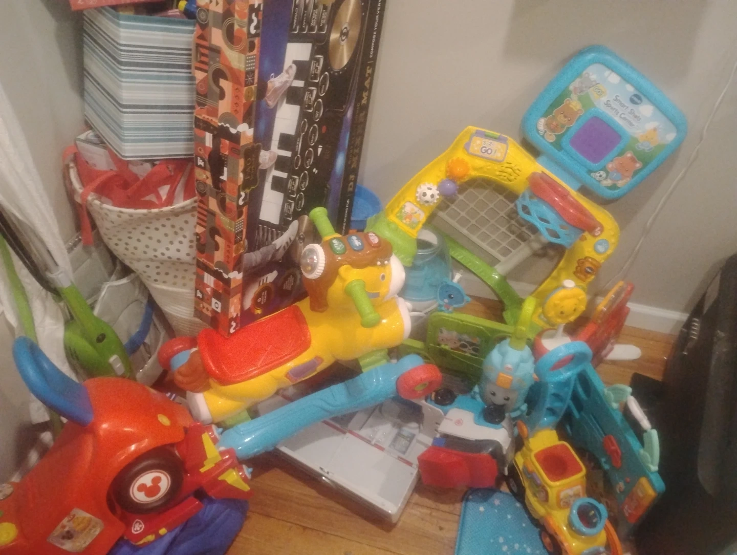 This VTech toy features a basketball hoop and soccer goal for active play. It includes interactive buttons and lights that entertain young children. Great for developing motor skills! And more either all together or Individual pieces for couple bucks or best offer each