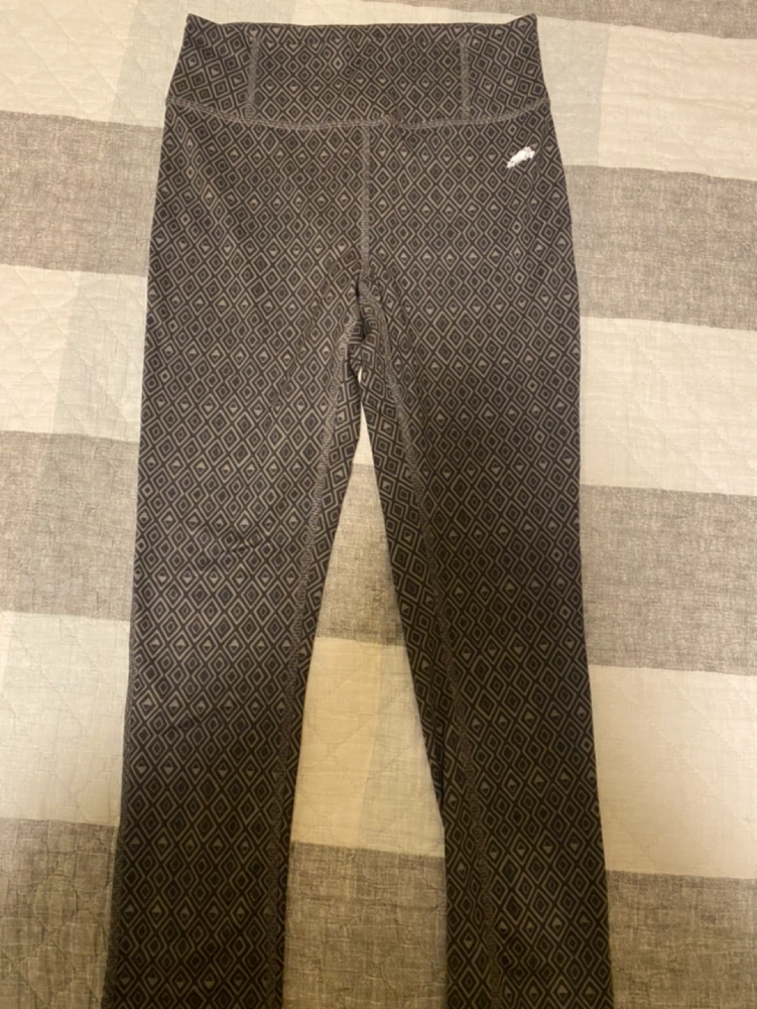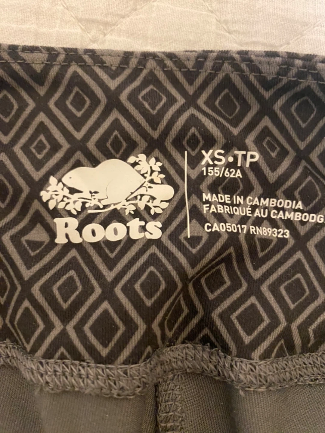 Roots leggings with a geometric pattern. Made with 86% polyester and 14% spandex. They're size XS/TP.
