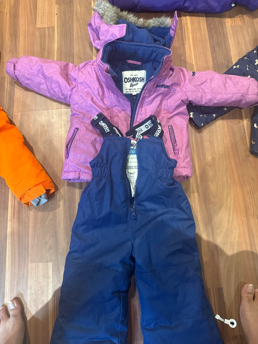 - OshKosh B'Gosh purple winter jacket with matching blue snow pants - 18MOS- $20