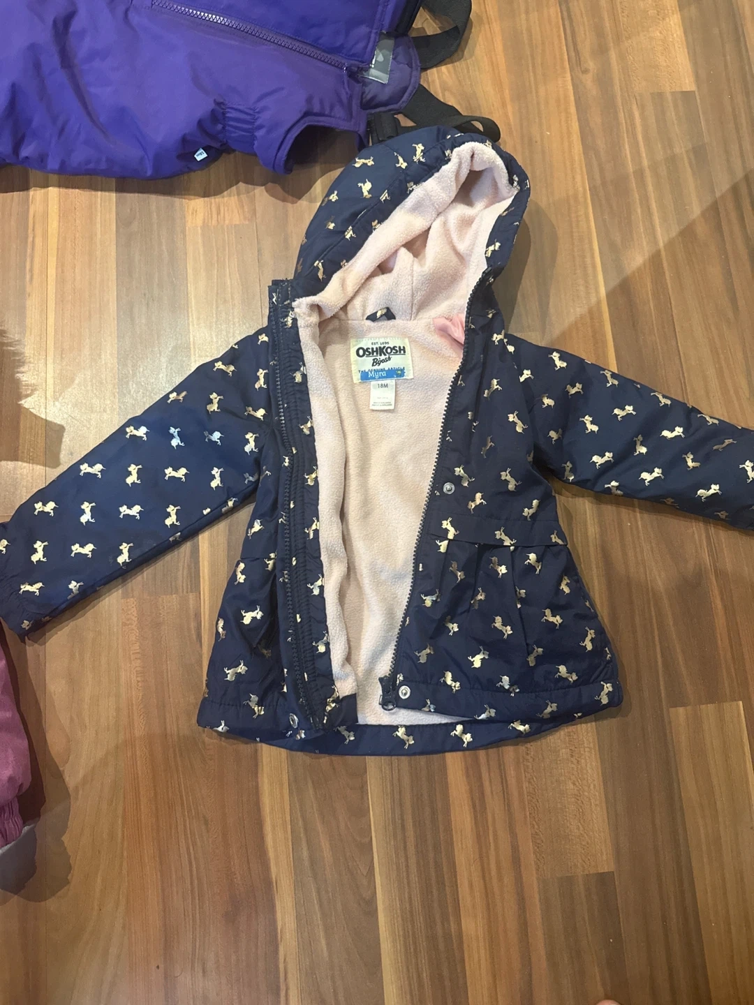 - OshKosh B'Gosh fall navy blue jacket with gold horse pattern - 18MOS - $10