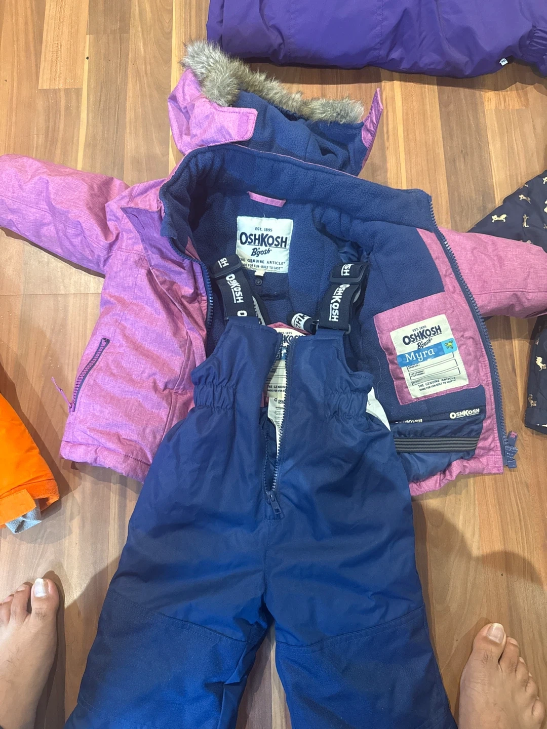 - OshKosh B'Gosh purple winter jacket with matching blue snow pants - 18MOS- $20
