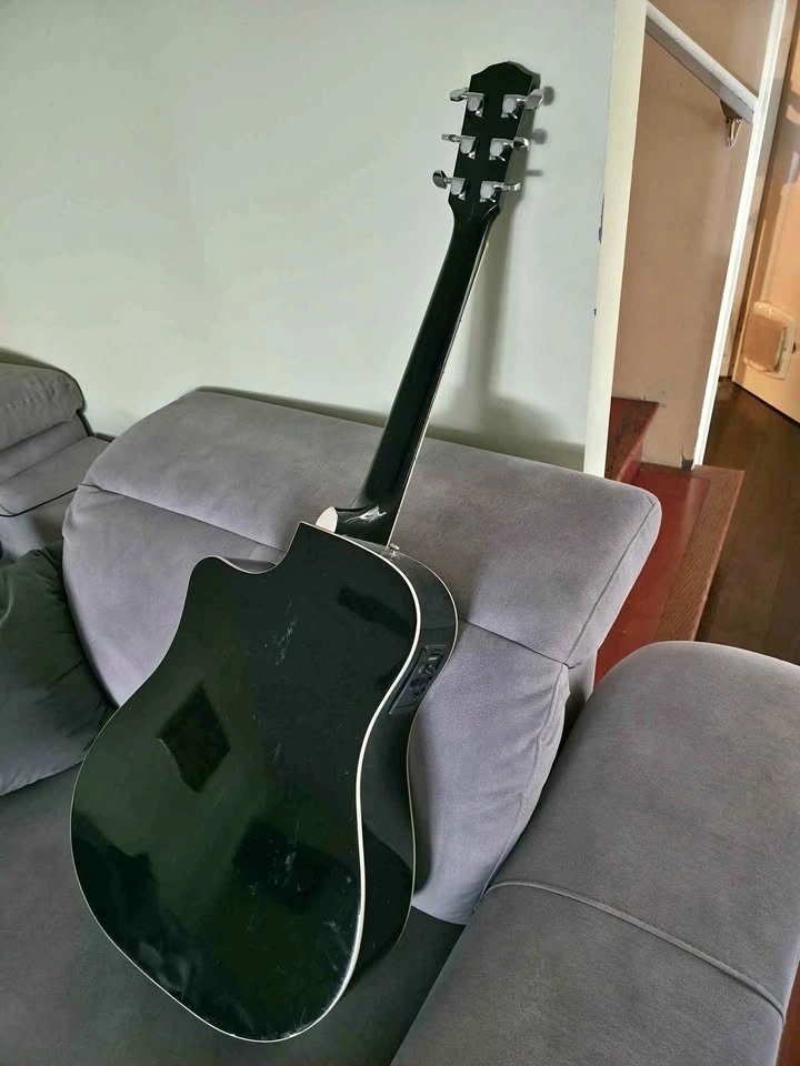 Classic Design with Rounded Walnut Fingerboard and Alloy Steel Strings, Glossed Black Finish, Spruce Top. Includes Hard-Shell Case. Feel free to message if you have any questions!