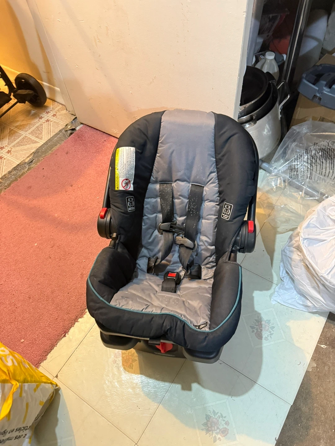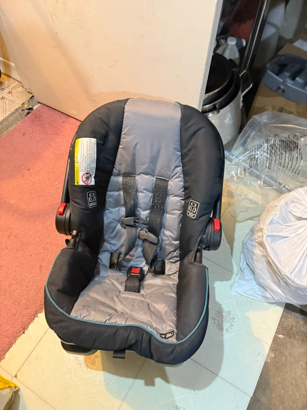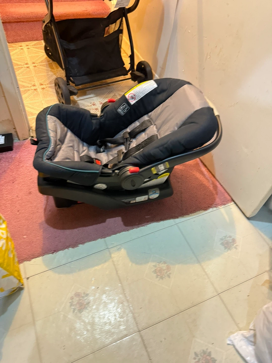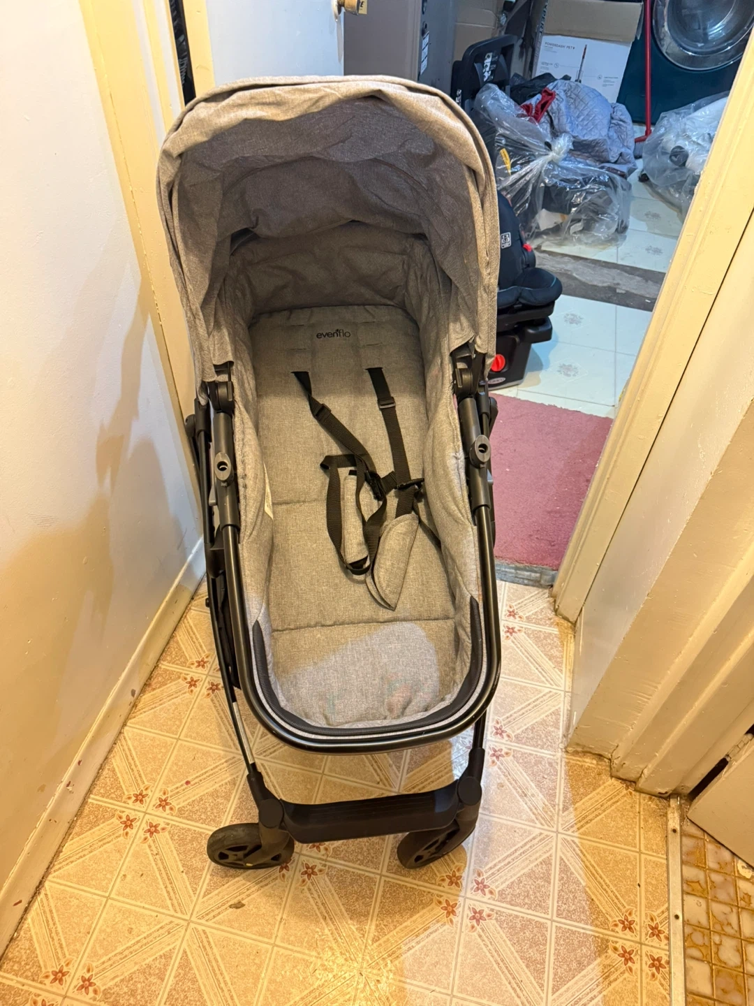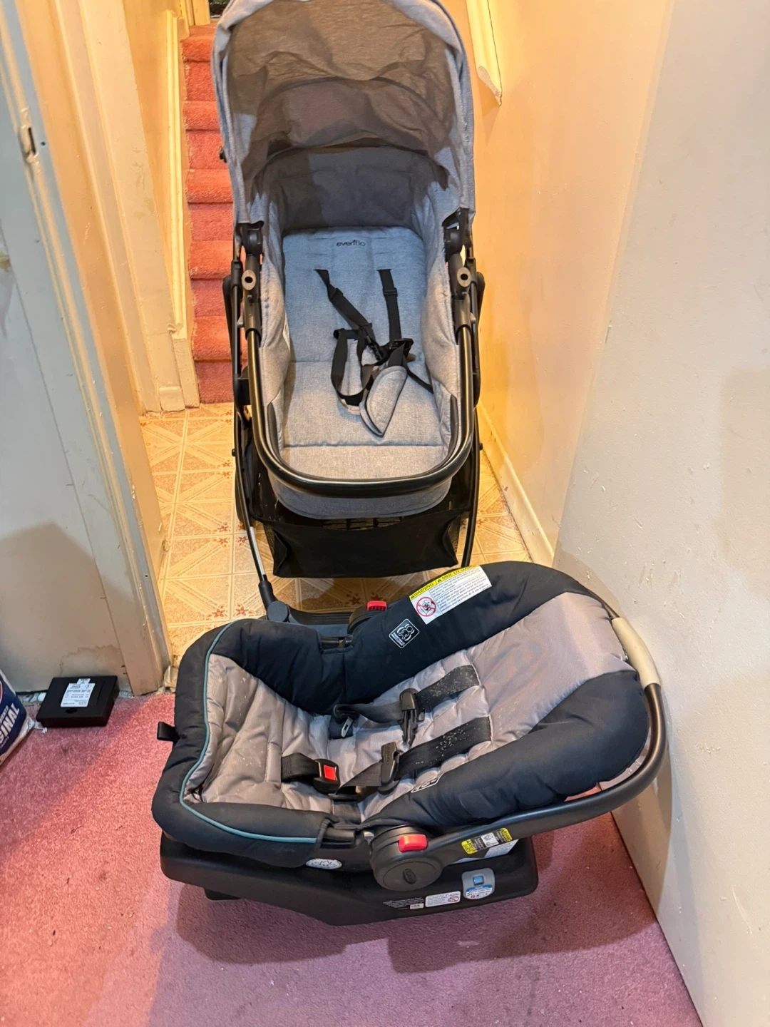 This Evenflo stroller and car seat travel system comes in a nice grey colour. It's perfect for getting your little one around town safely. The car seat includes a base for easy installation.