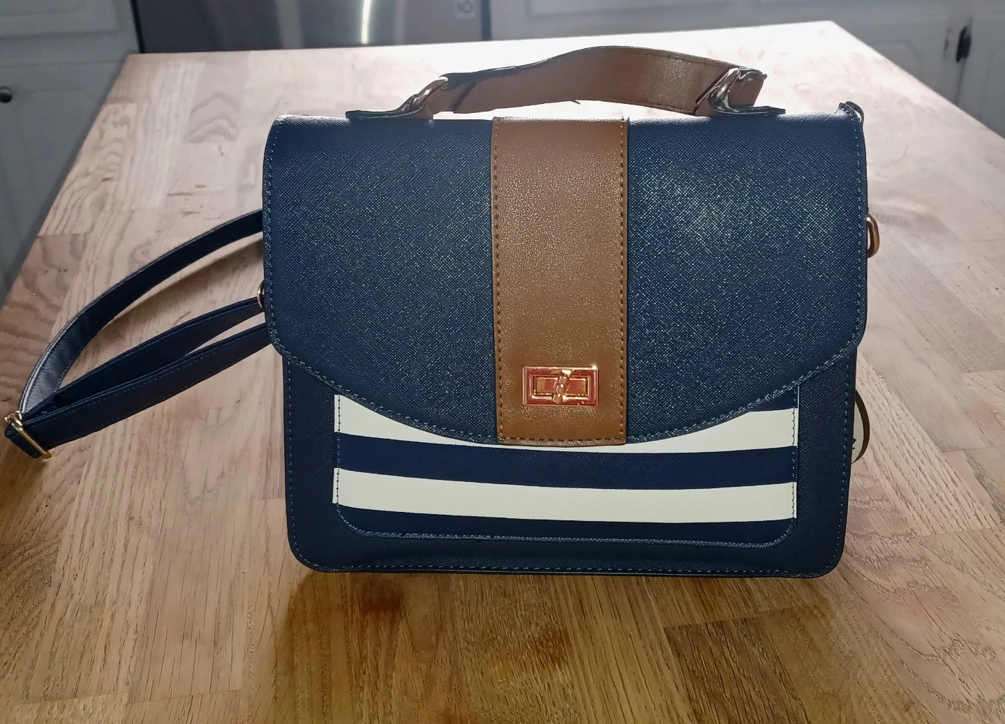 Navy Blue & Brown Shoulder Bag