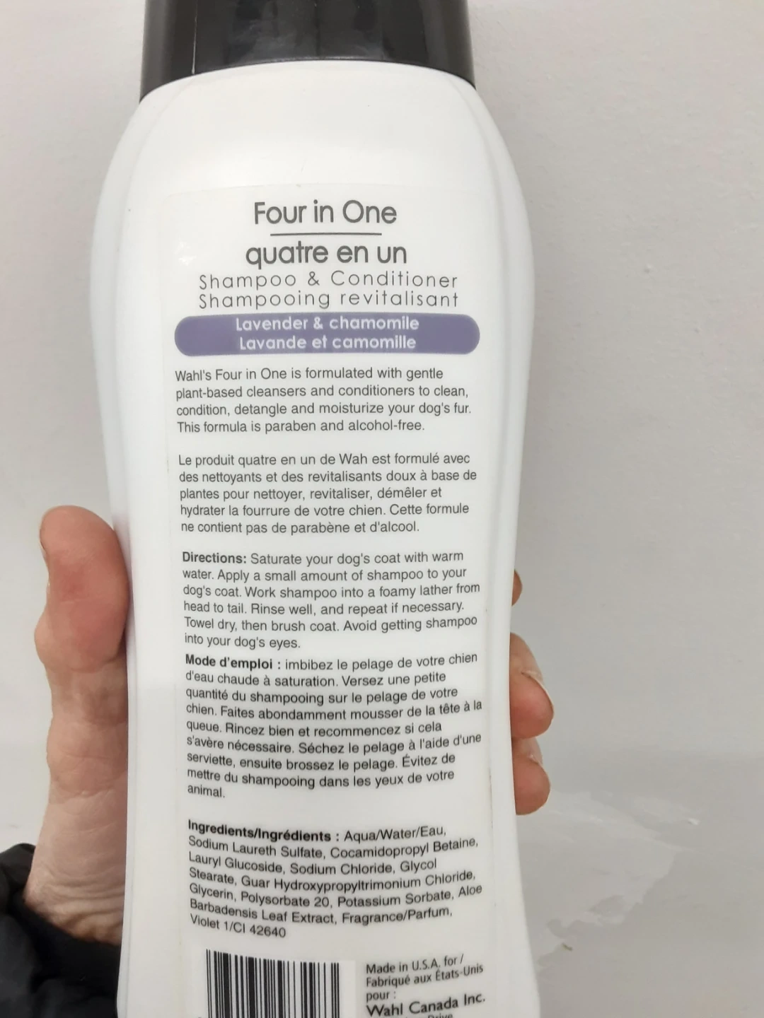 Wahl's Four in One shampoo and conditioner is formulated with gentle plant-based cleansers. It's designed to clean, condition, detangle, and moisturize your dog's fur. This formula is also paraben and alcohol-free, making it gentle for your pet.
