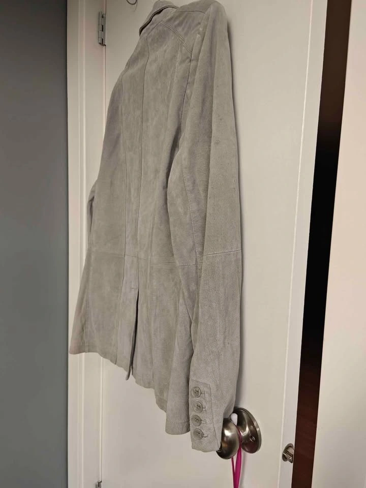 Grey suede blazer, Men's size Medium. Good condition. Wrinkles are from storage in a suitcase. Pick up can be arranged in North Delta, Burnaby, or Richmond on certain days/times.