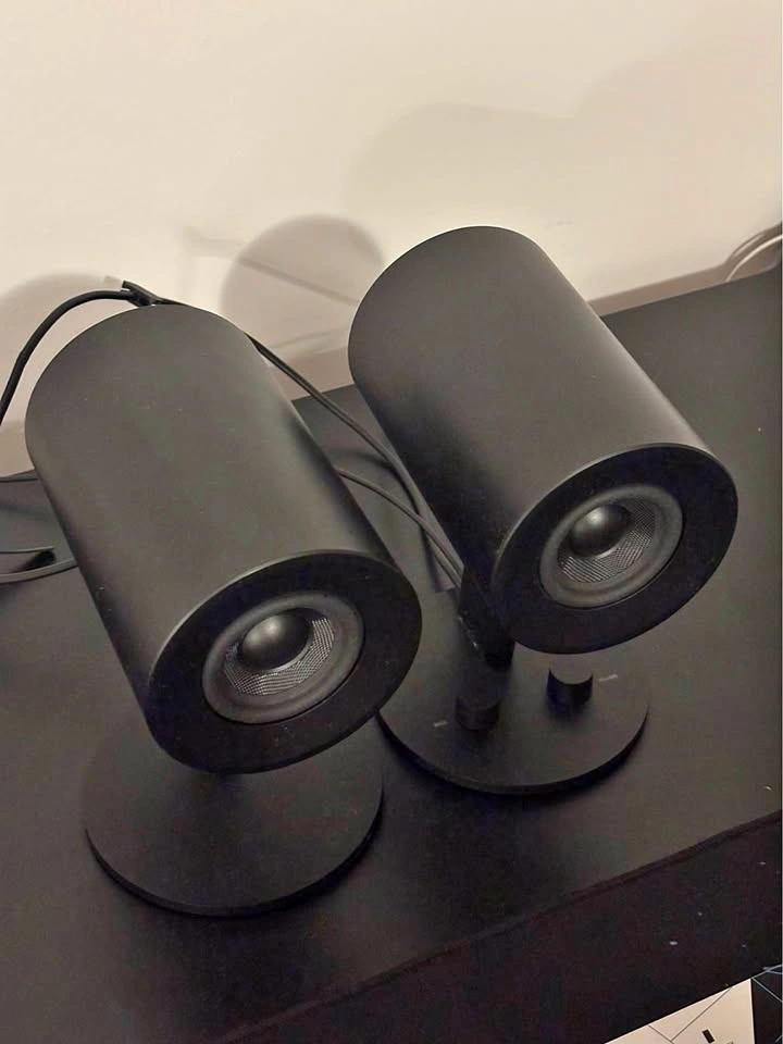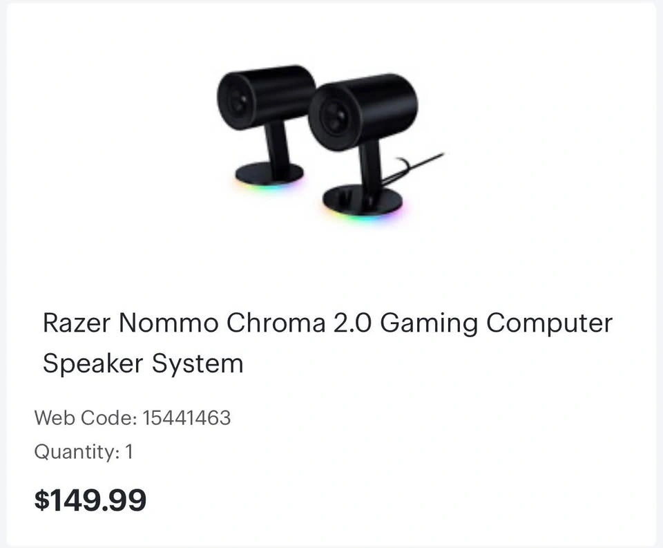 Awesome Razer Nommo Chroma 2.0 Gaming Speaker System. Great sound for your setup. Has cool RGB lighting on bottom. Very nice sound. Perfect for gaming and leisure activities. No issues.