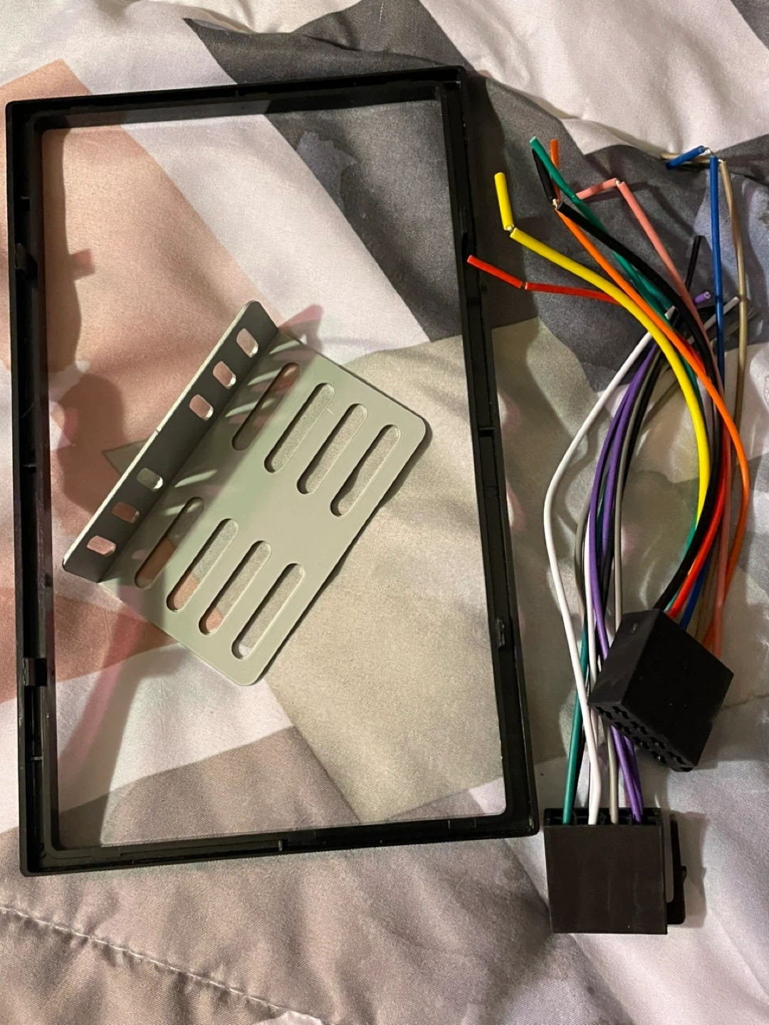 This is a car stereo receiver that works with Apple CarPlay and Android Auto. It features HD Display, Bluetooth, and Audio/Video input. Includes a remote control and wiring harness.