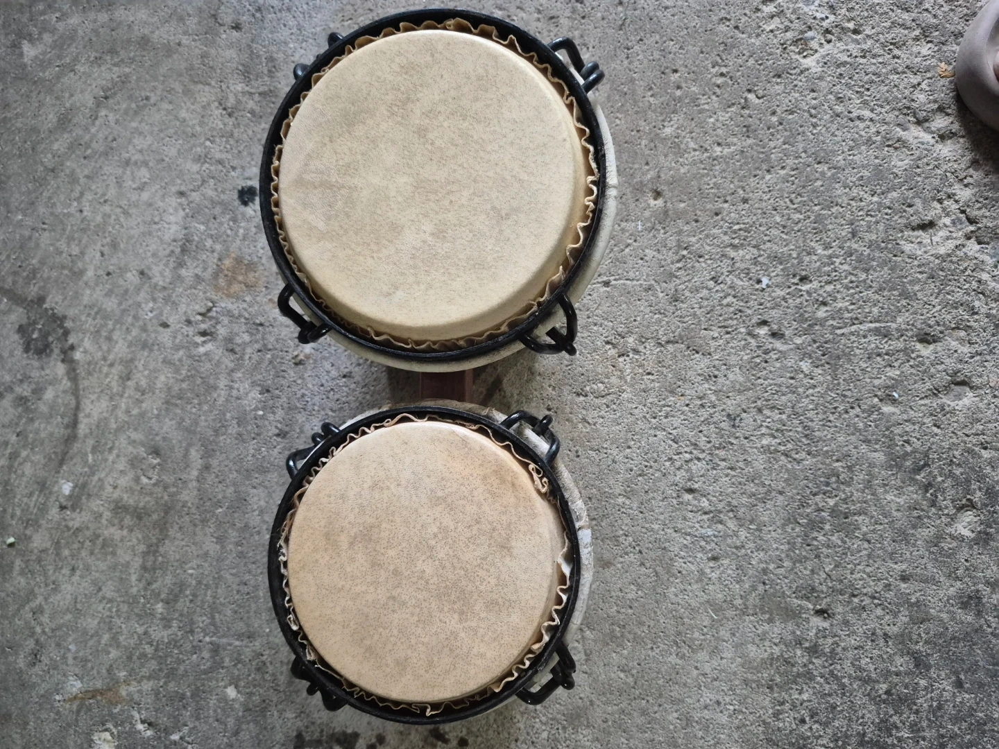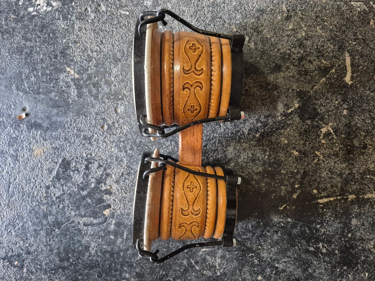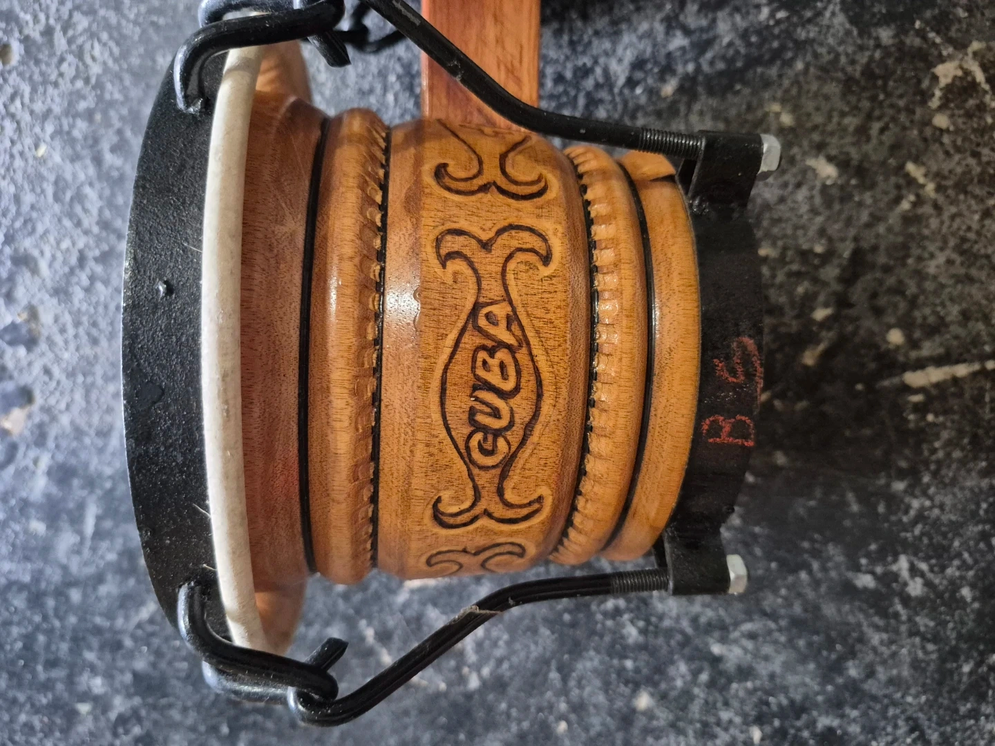 Selling a set of Cuba bongo drums! They have a beautiful wood finish with decorative carvings. Perfect for anyone looking to add some rhythm to their life