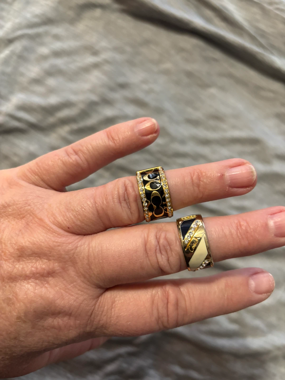 Coach rings featuring the Coach logo with crystals. Perfect for adding a touch of bling to any outfit