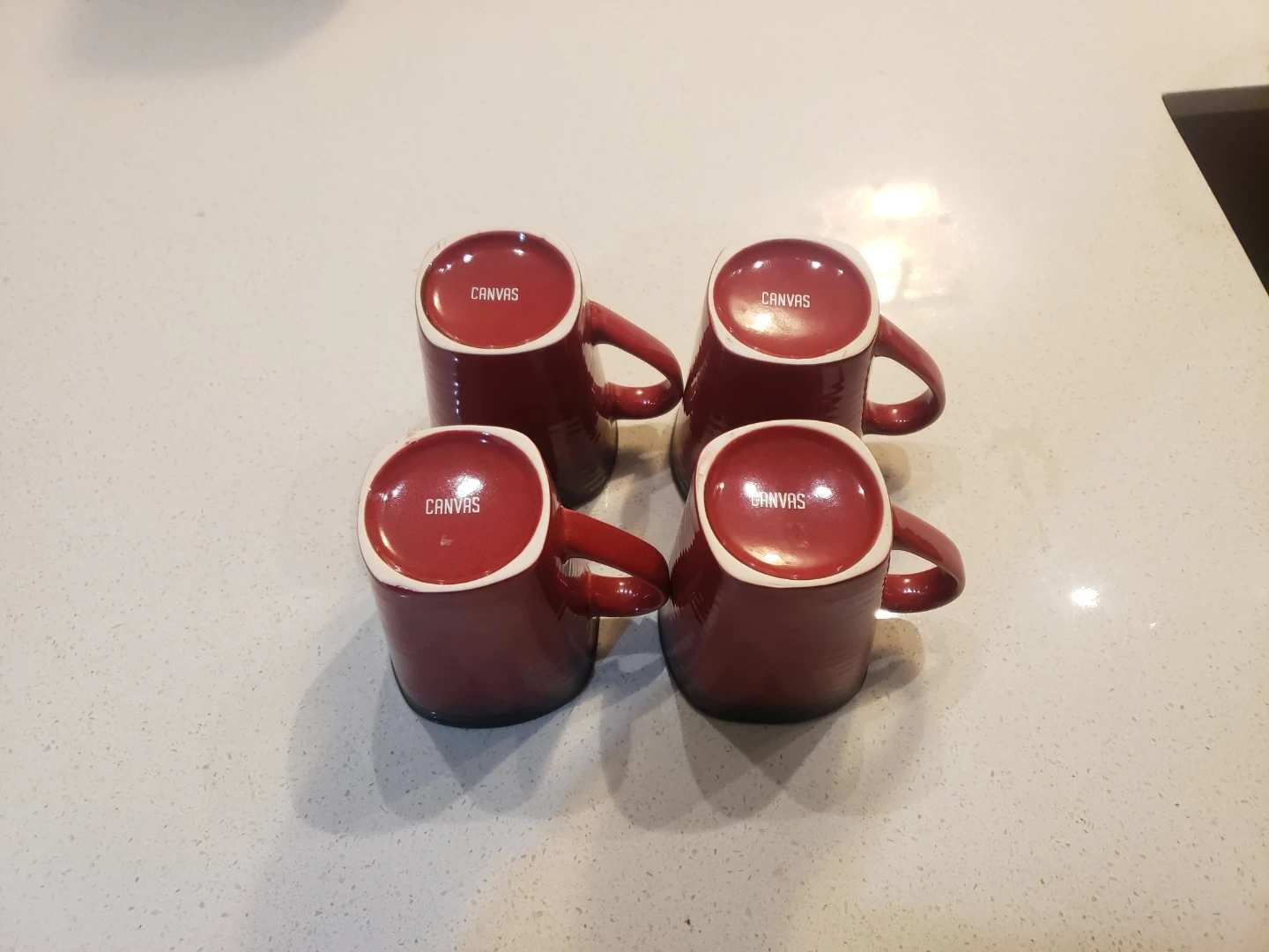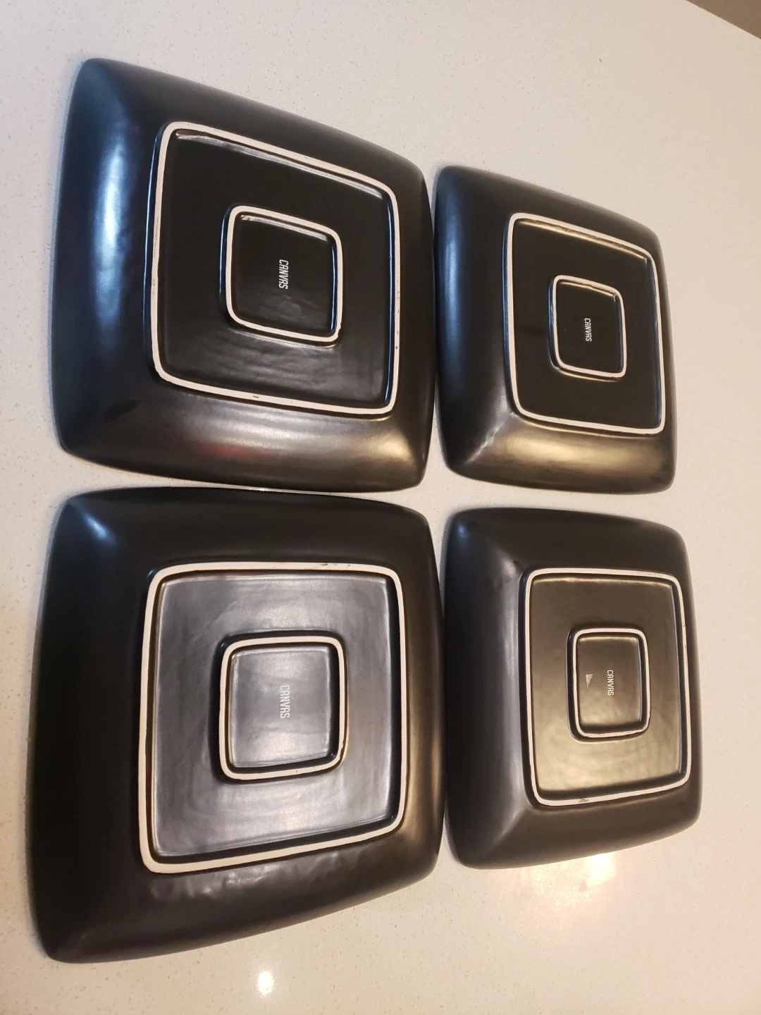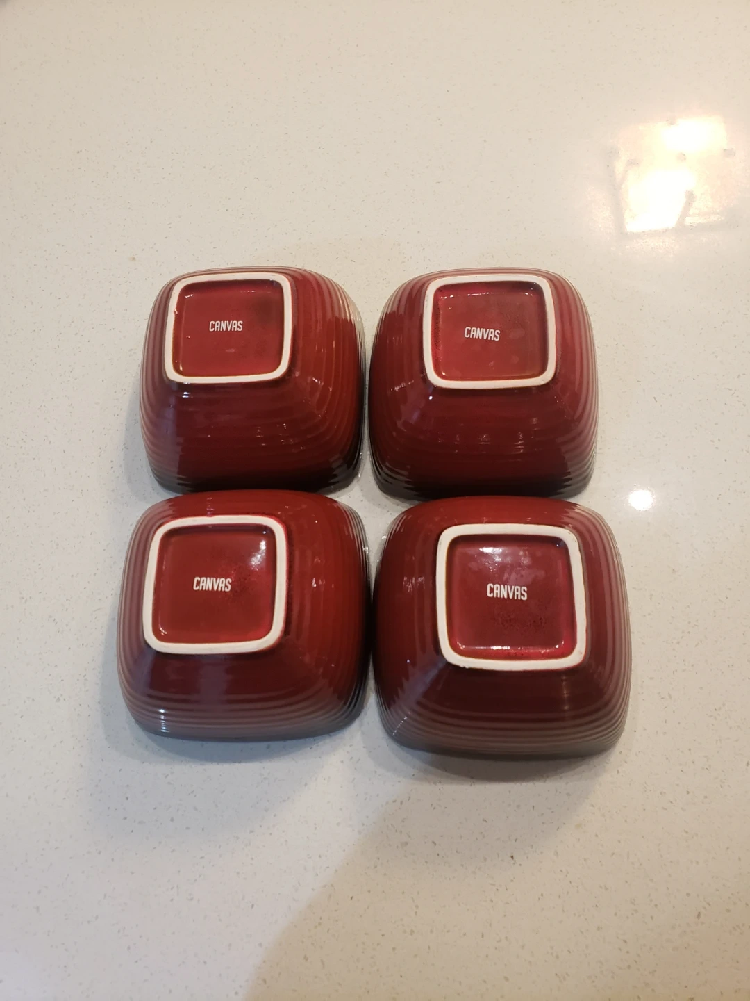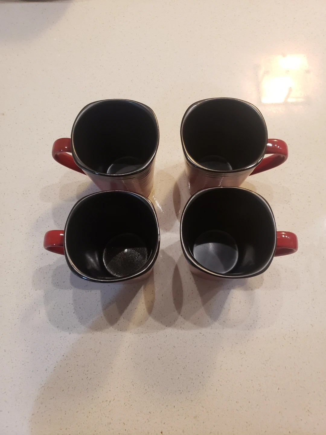 This 12 piece Dinnerware set of has a unique square shape, and features a great color contrast between red and black glaze . 4 large plates, 4 small plates, 4 bowls, 4 mugs. They're perfect for serving both appetizers or main courses. Dishwasher sat