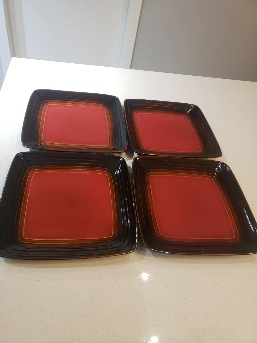12 piece Square Red and Black Dinnerware set