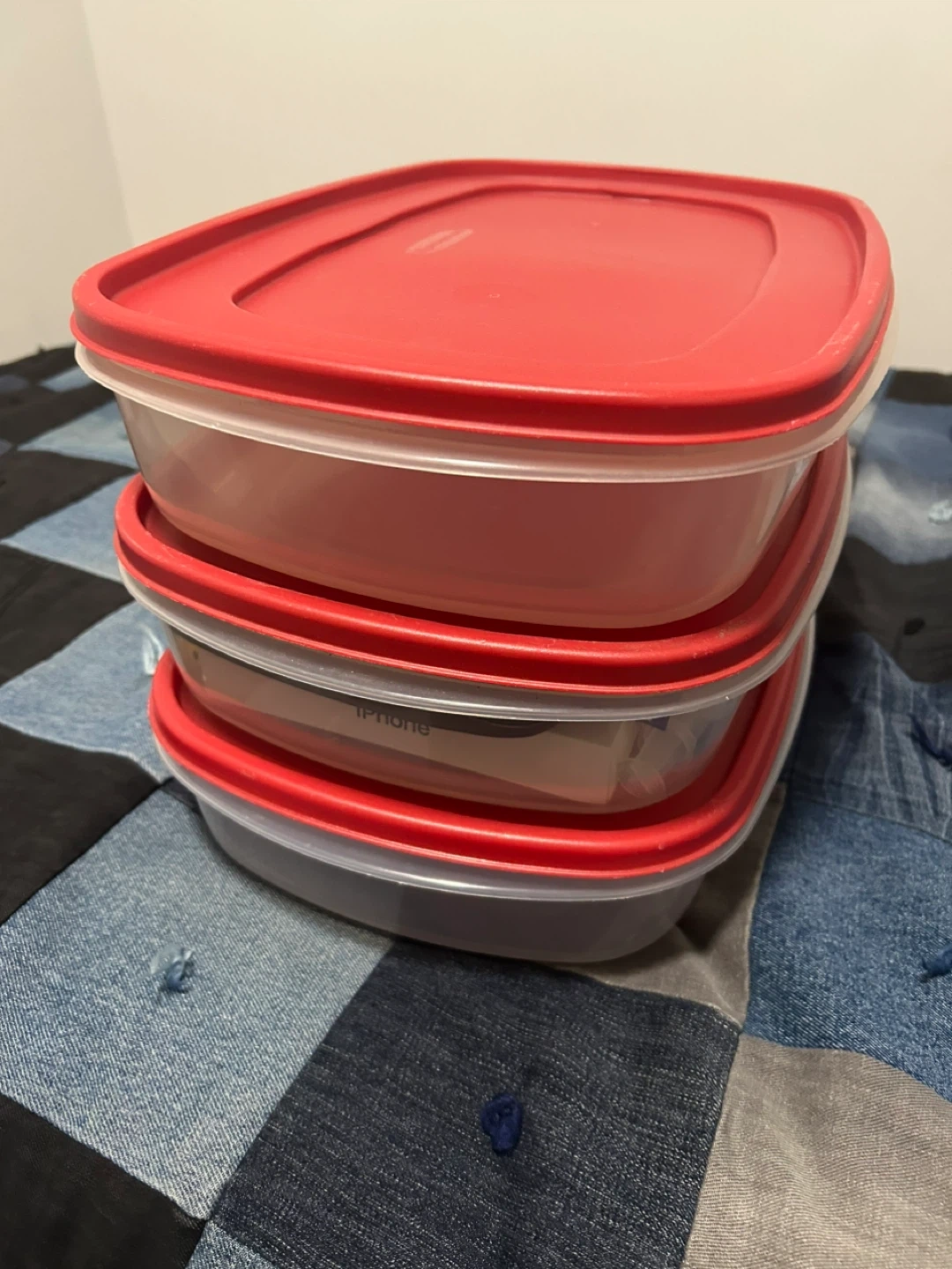 Selling a set of 3x 1.5 Gallon Rubbermaid food storage containers with red lids. These are perfect for meal prepping or storing leftovers. They're in great shape and ready to keep your food fresh!