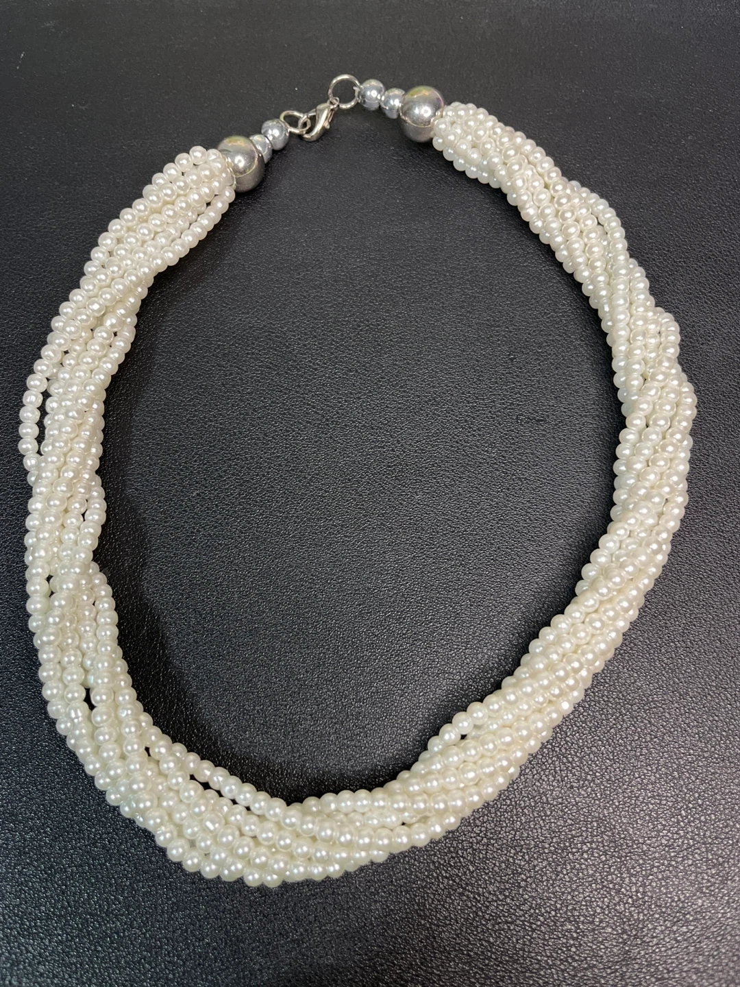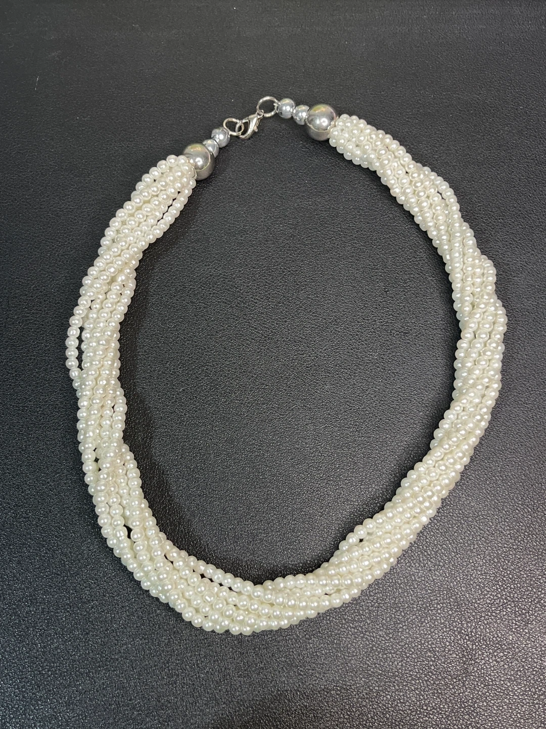 🥕Multi-strand faux pearl necklace with silver tone clasp