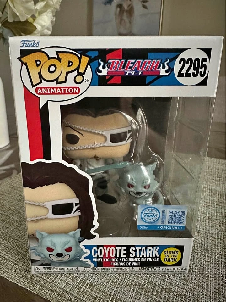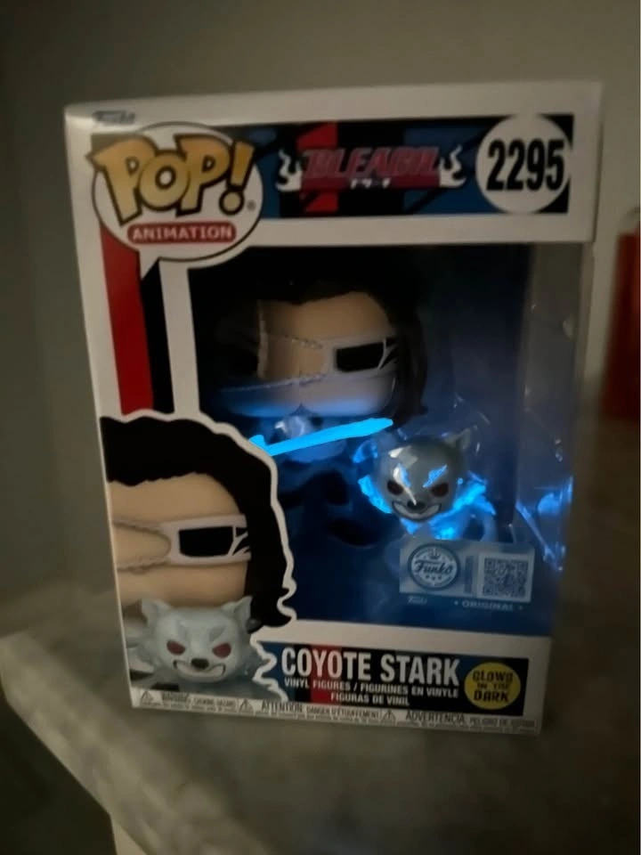 Coyote Stark Funko pop from Bleach. Glow in the dark. Mint condition. Still in box, never opened. Price is firm.