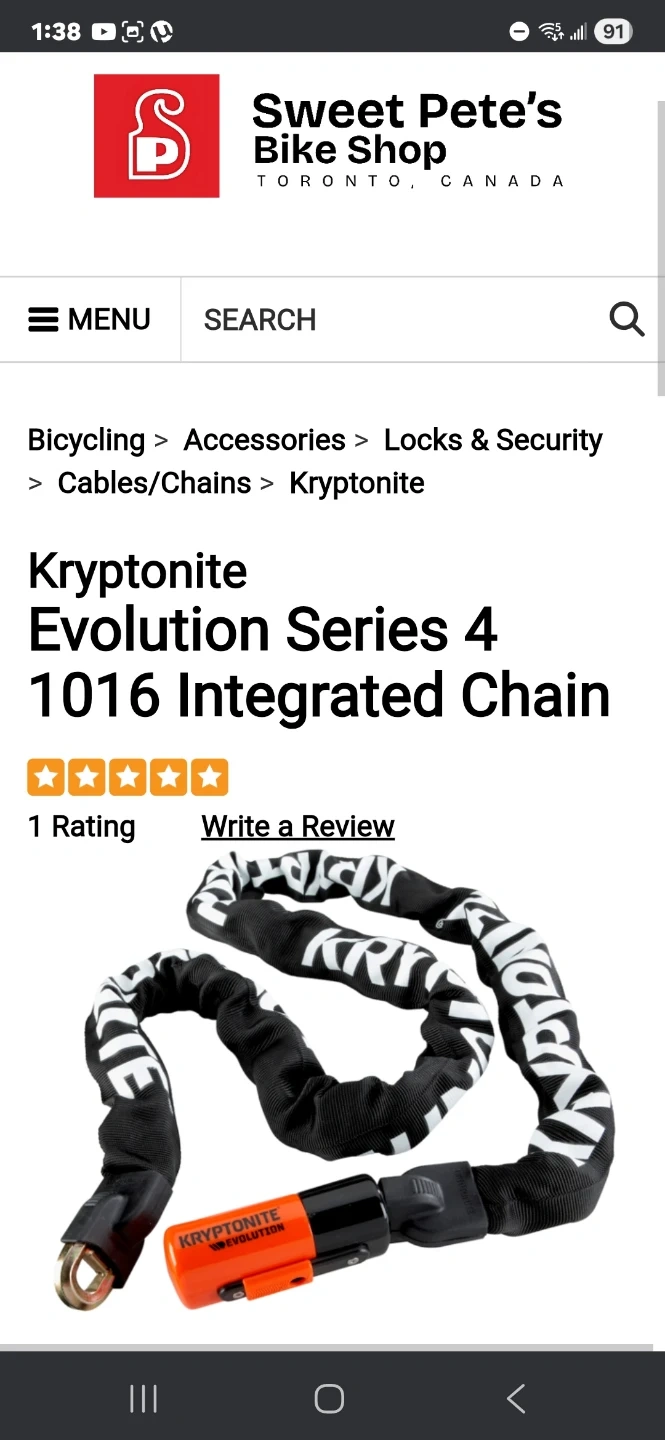 The Kryptonite Evolution Series 4 1016 is a heavy-duty, integrated chain lock designed for high-security bicycle protection in urban environments. It is particularly favored by e-bike owners and commuters due to its flexibility and robust 10mm steel links.