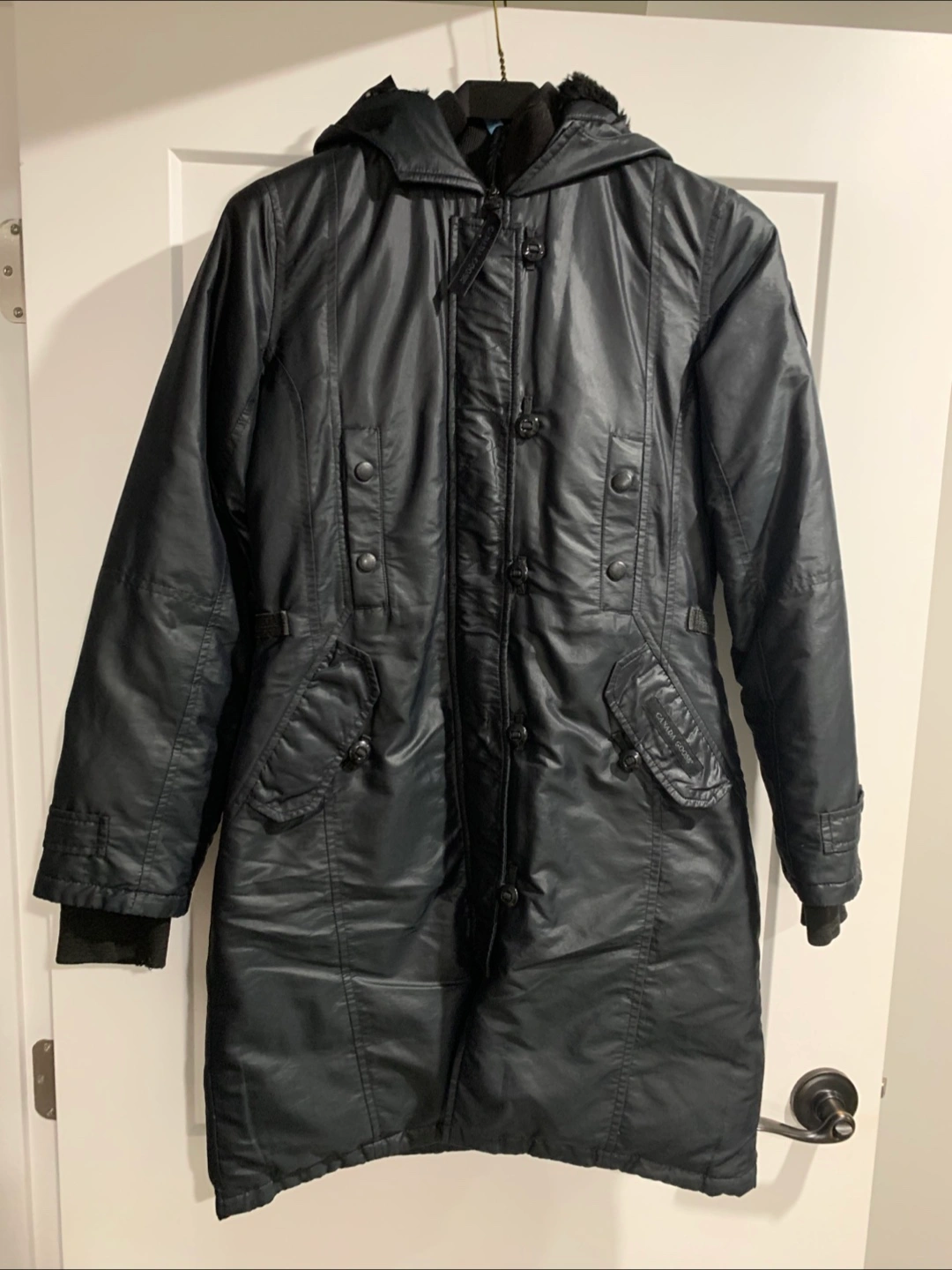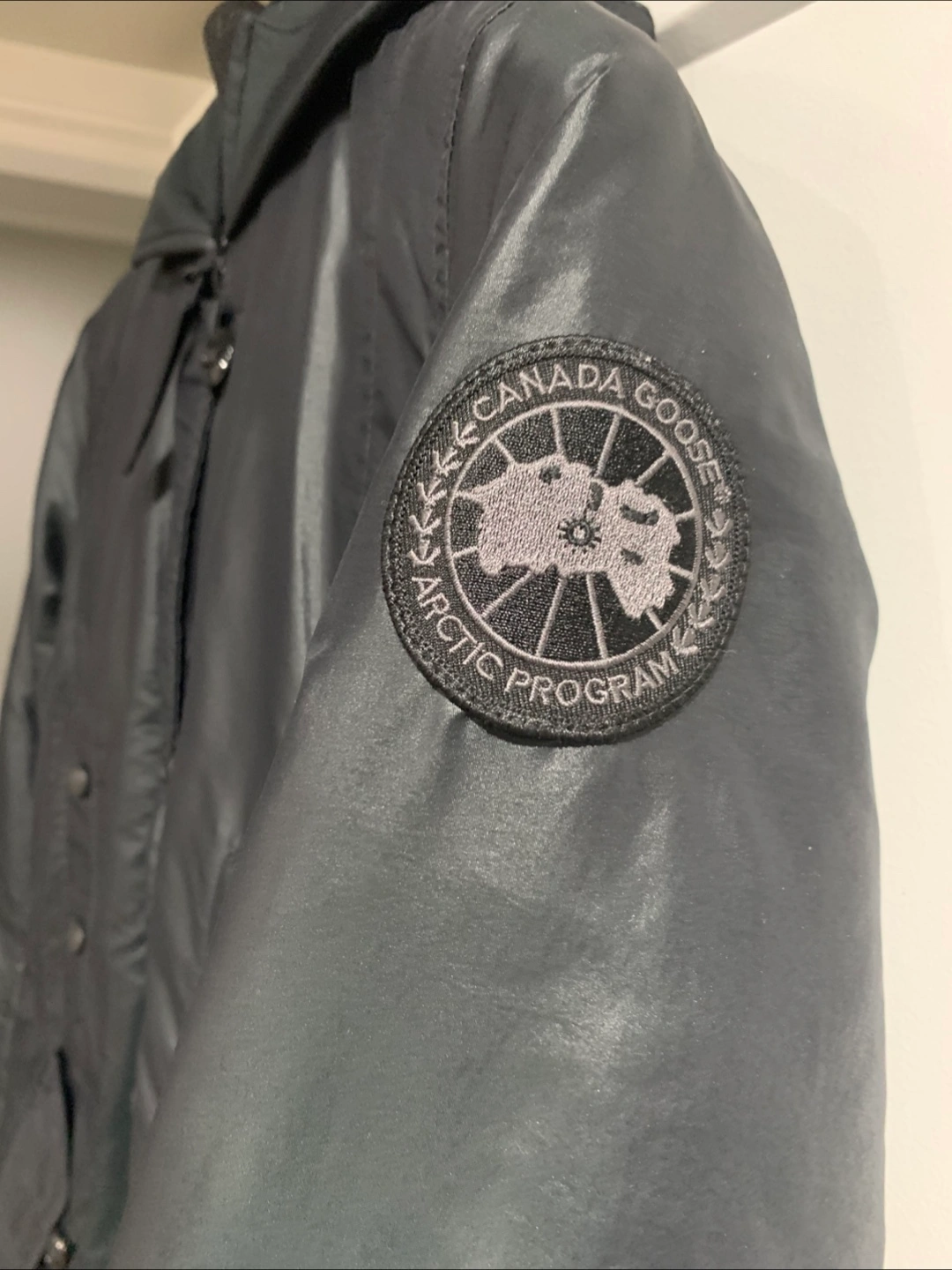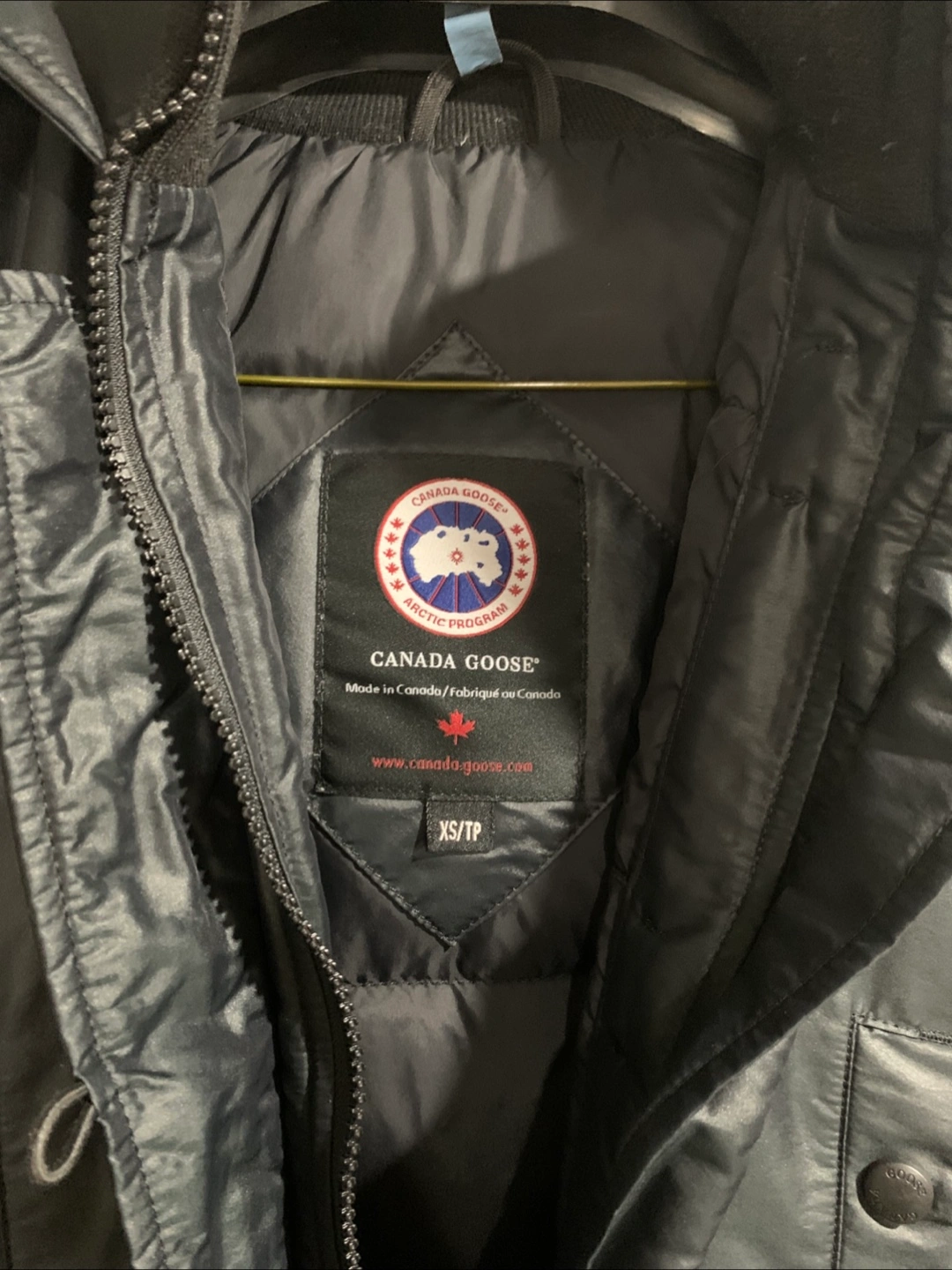 Selling a Canada Goose jacket in size XS. It's a stylish black colour and in great condition. The outer shell is made of polyester and the lining is nylon