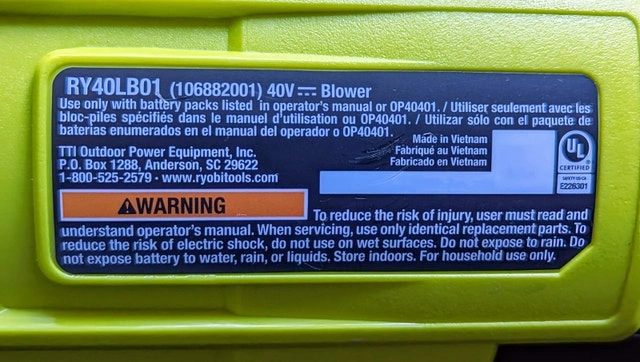 Hi everyone, Available for immediate sale is ONE (1) RYOBI 40V 120MPH 550CFM Cordless Blower. TOOL ONLY. - More power than a 25cc gas blower, making it a true gas replacement - Over 75 minutes of runtime using a Ryobi 40V 4Ah battery - Lightweight design with variable speed trigger - No gas, no maintenance, no hassle Buyer welcome to test with a charged and working Ryobi 40V battery. Retail price: $200+ (after tax). Why pay full retail price, shipping charges, import fees, sales taxes and then wait? Save money and have it in your hands today! Meet in West GTA, flexible days and times. Cash only, no trades please, thank you. Ryobi 40V Cordless Brushless Leaf Blower