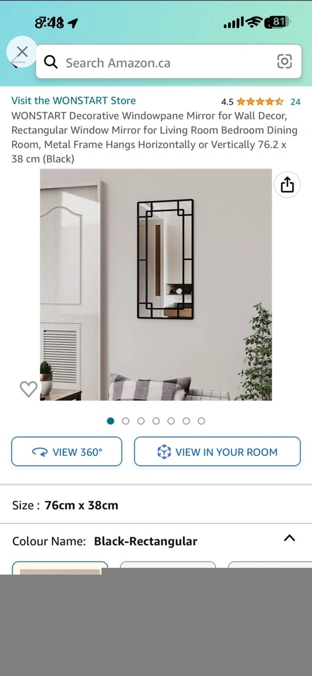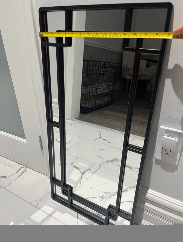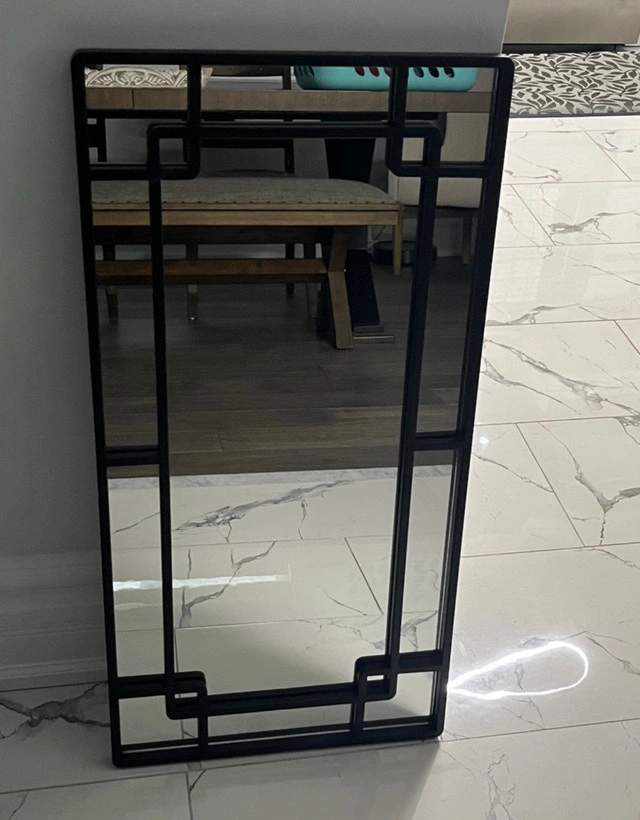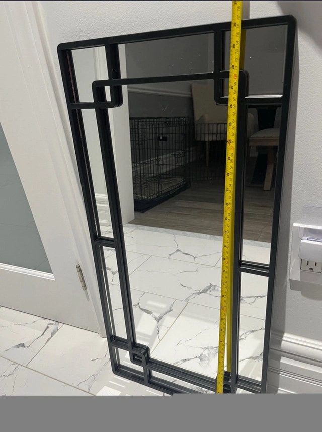 Decorative windowpane mirror for wall decor. Rectangular mirror with a metal frame. Can hang horizontally or vertically. Dimensions: 76.2 x 38 cm. Condition: New. For Sale By: Owner.