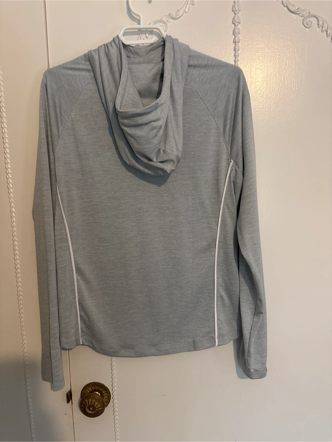 Lightweight Under Armour hoodie in a nice light grey colour. Under Armour logo is on the sleeve and chest. Smoke free home.