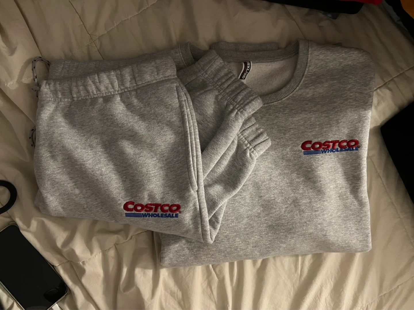Grey Kirkland Signature crewneck sweatshirt and sweatpants. (The sweatpants have had more wear and signs of wear then top) Size XL - in men’s ! And XXL in women’s !