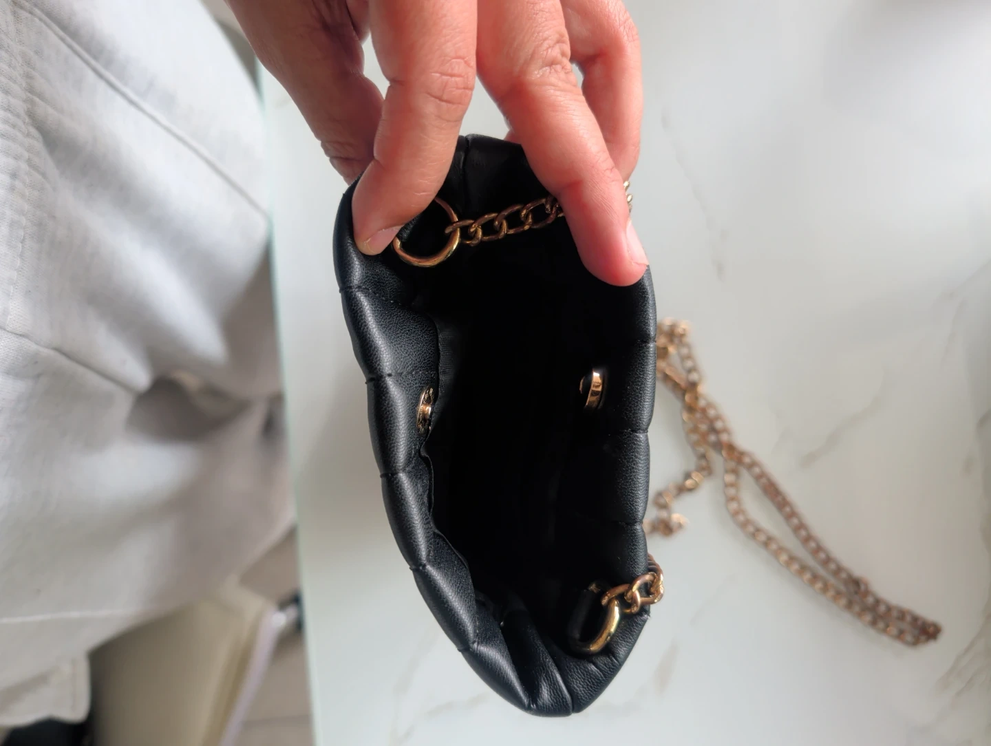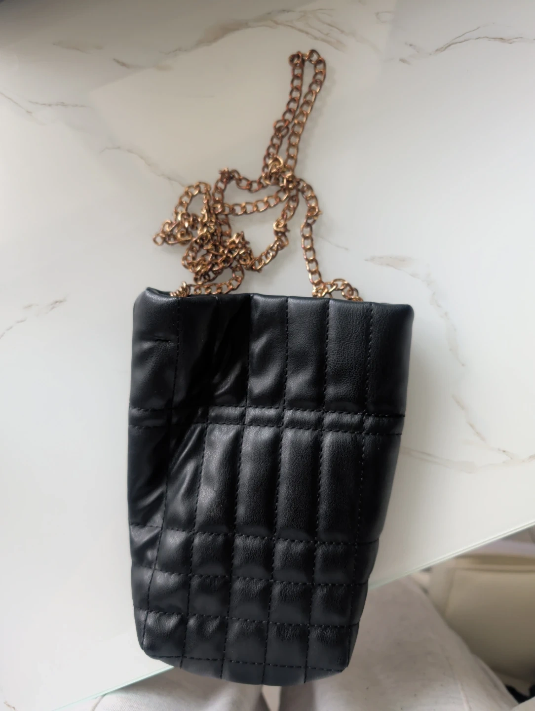 Buy & SellBlack Quilted Chain Shoulder BagBlack Quilted Chain Shoulder Bag$10Quilted faux leather shoulder bag with a gold-tone chain strap. It's black with a matte finish. Snap closure inside.ConditionOkaySizesmallWHERE TO MEETStarbucksView MapSELLERverifiedmariaMariners Harbor600 reviews0 chats·0 favorites·1 viewsSEND CHAT TO SELLERHi maria! I’m interested in your listing.Hi maria! I’m interested in your listing.Get the Karrot app to chatSign In to chat