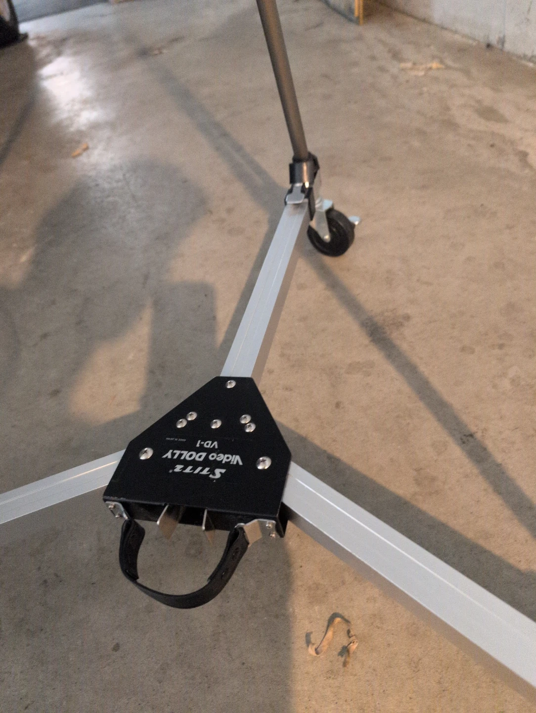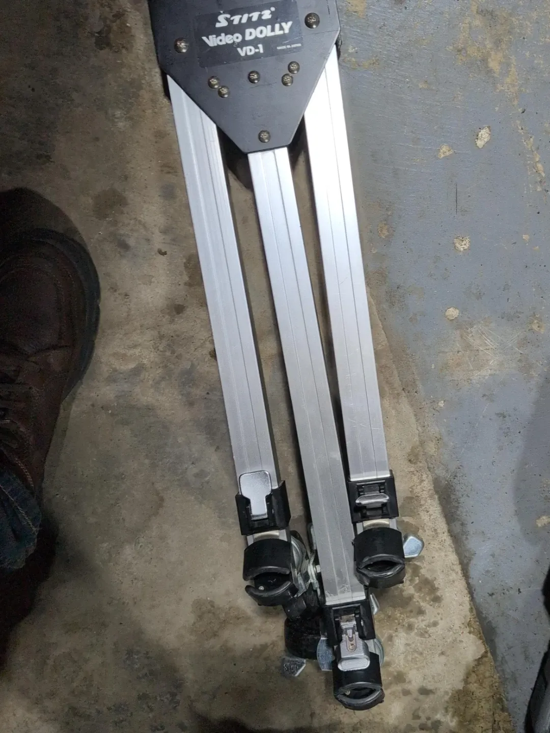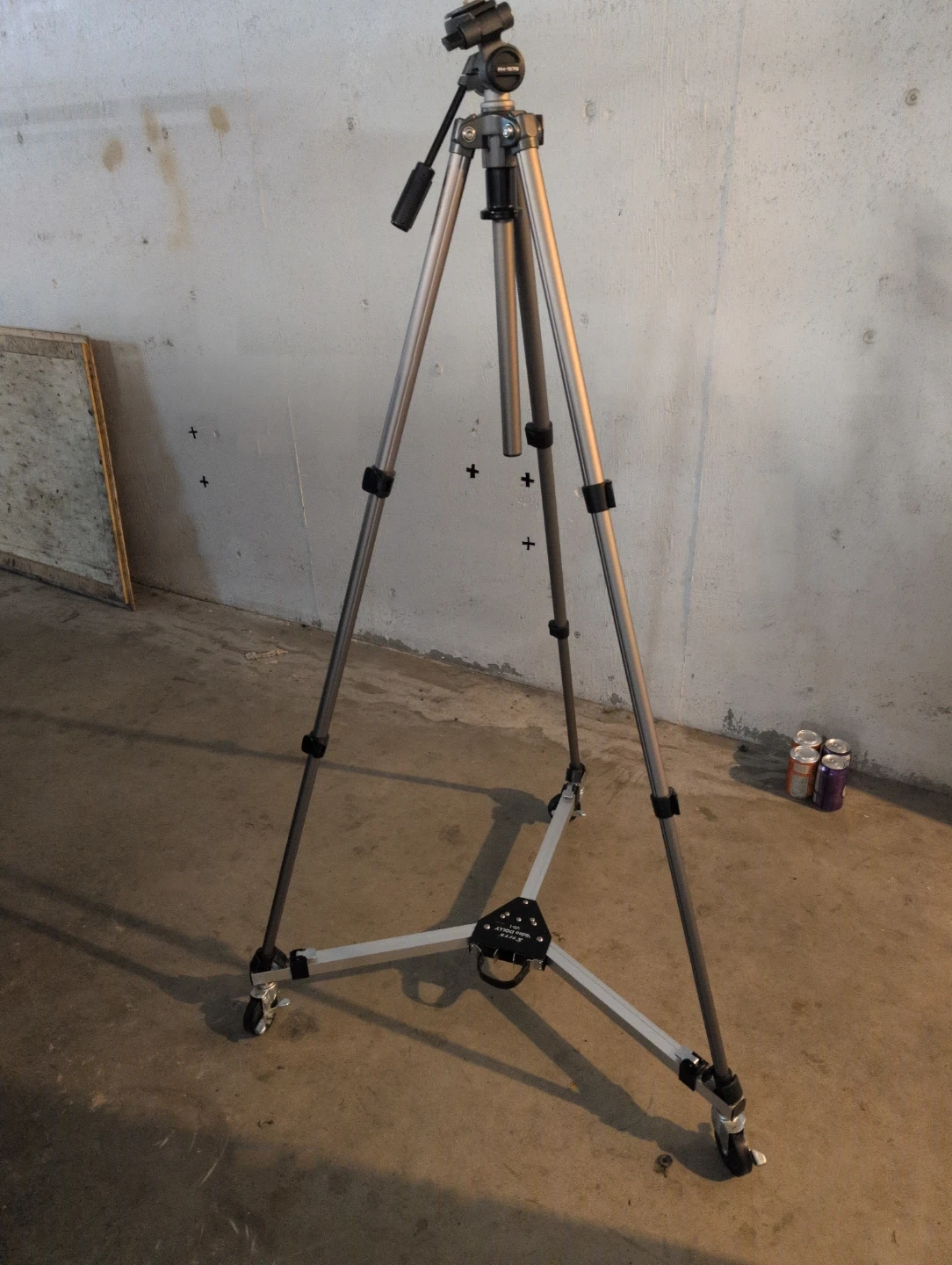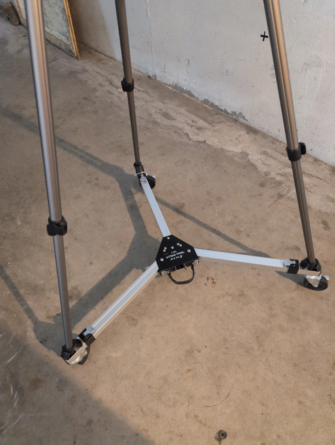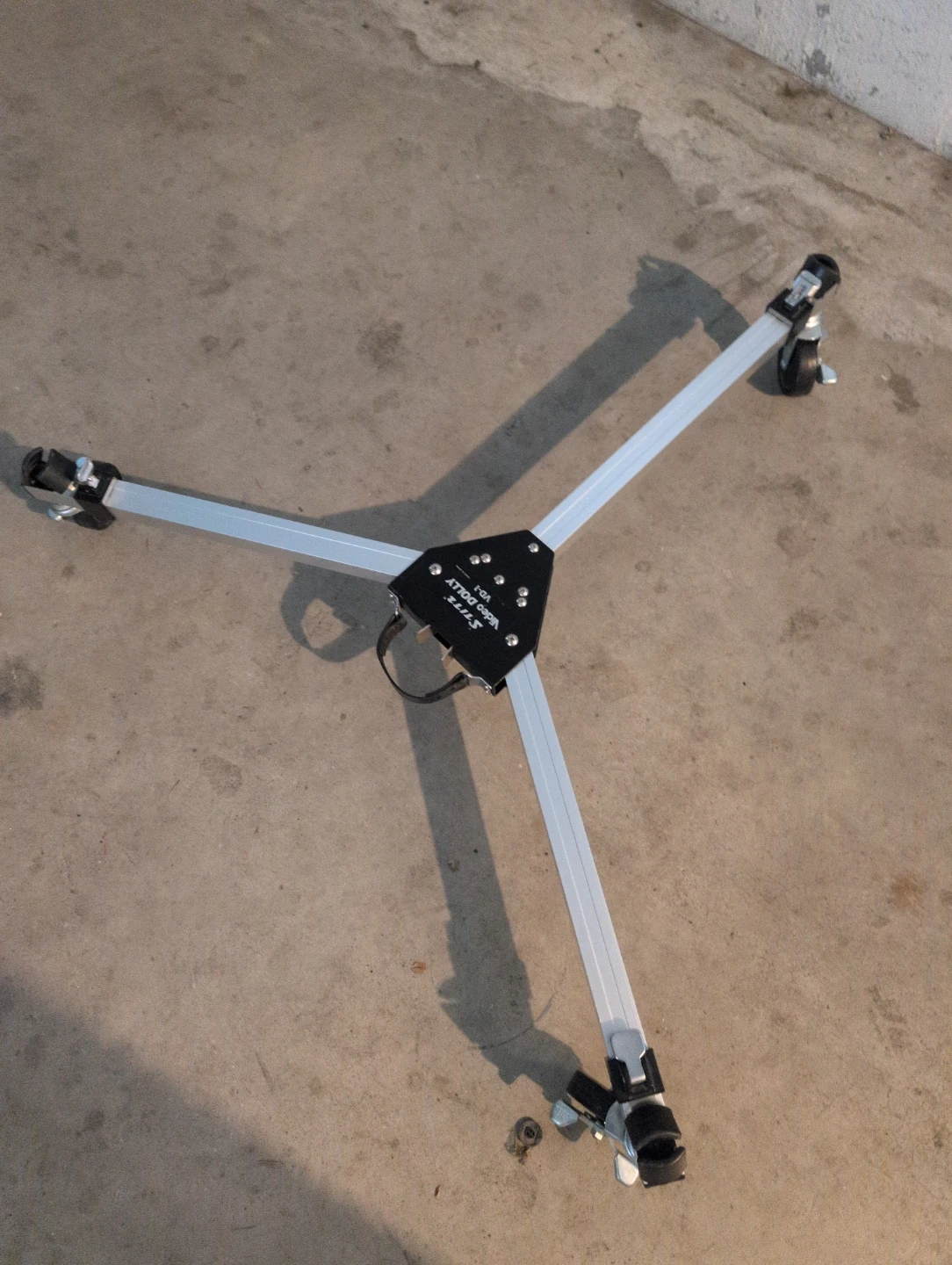 This is the Slik Video Dolly VD-1, designed to add smooth rolling movement to your tripod shots. It features built-in wheels. It's made of durable aluminum.