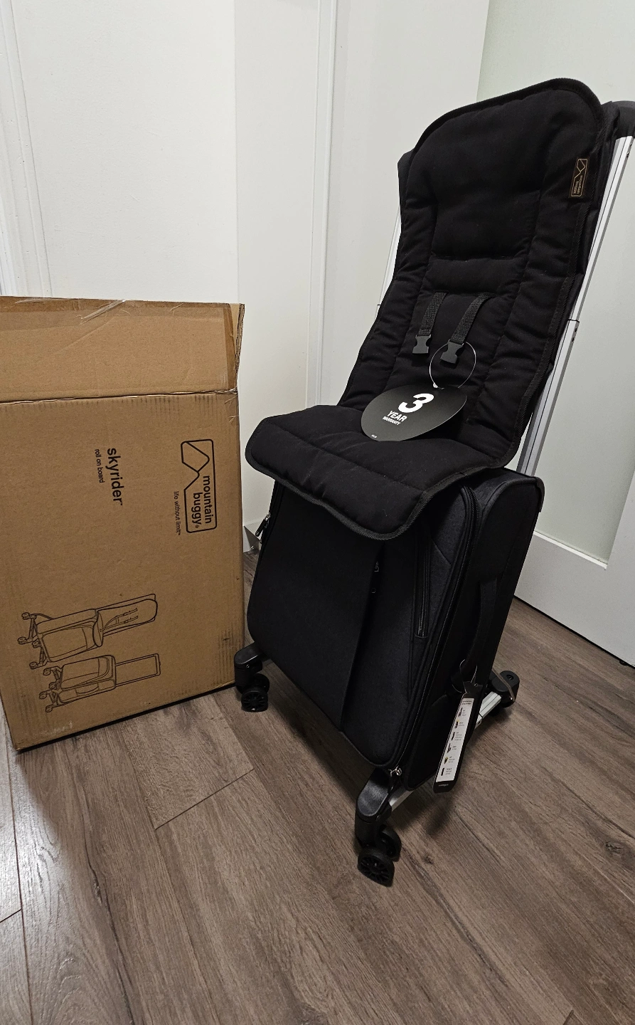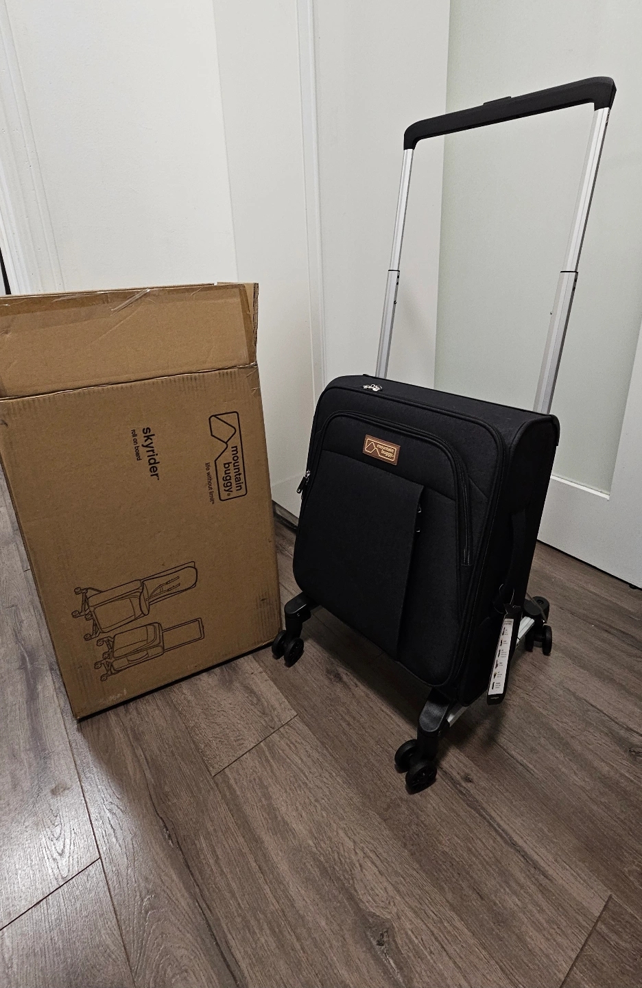 I am selling a Mountain Buggy Skyrider, a unique travel accessory that transforms from a rolling suitcase into a ride-on suitcase for toddlers. This innovative product is designed to make traveling with young children easier and more enjoyable. It is in used but like new condition, ready for its next adventure.