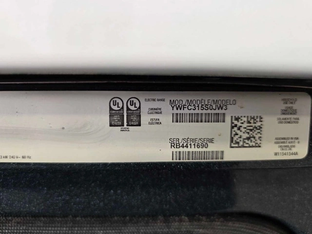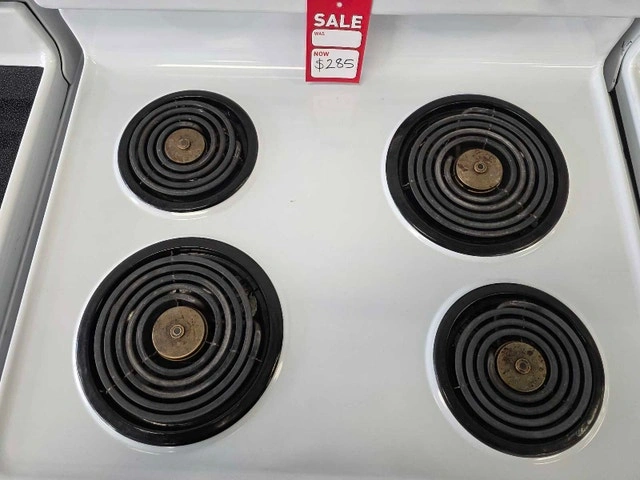Whirlpool Electric Range – $285 CAD. 3-MONTH WARRANTY included. Professional installation available. Old appliance disposal available. RANGE – Whirlpool YWFC315S0JW3 • 30" wide | Color: White | Freestanding • 4.8 cu. ft. oven capacity • 4 coil burners (2,400W highest element) • Keep Warm setting • Adjustable Self-Cleaning Technology • Closed Door Broiling • Upswept SpillGuard™ cooktop (raised edges) • Large oven window • Control Lock mode • Storage drawer • 2 oven racks • Electric (240V). Feel free to message if you have any questions!