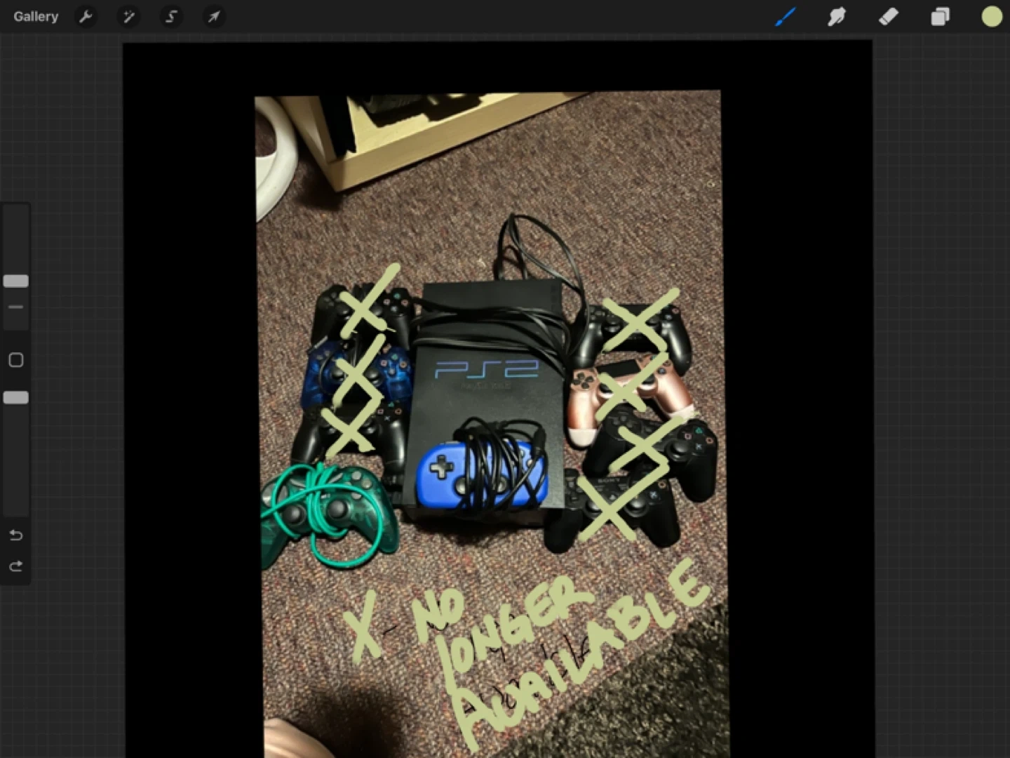 Selling a PlayStation 2 console along with 2 controllers.