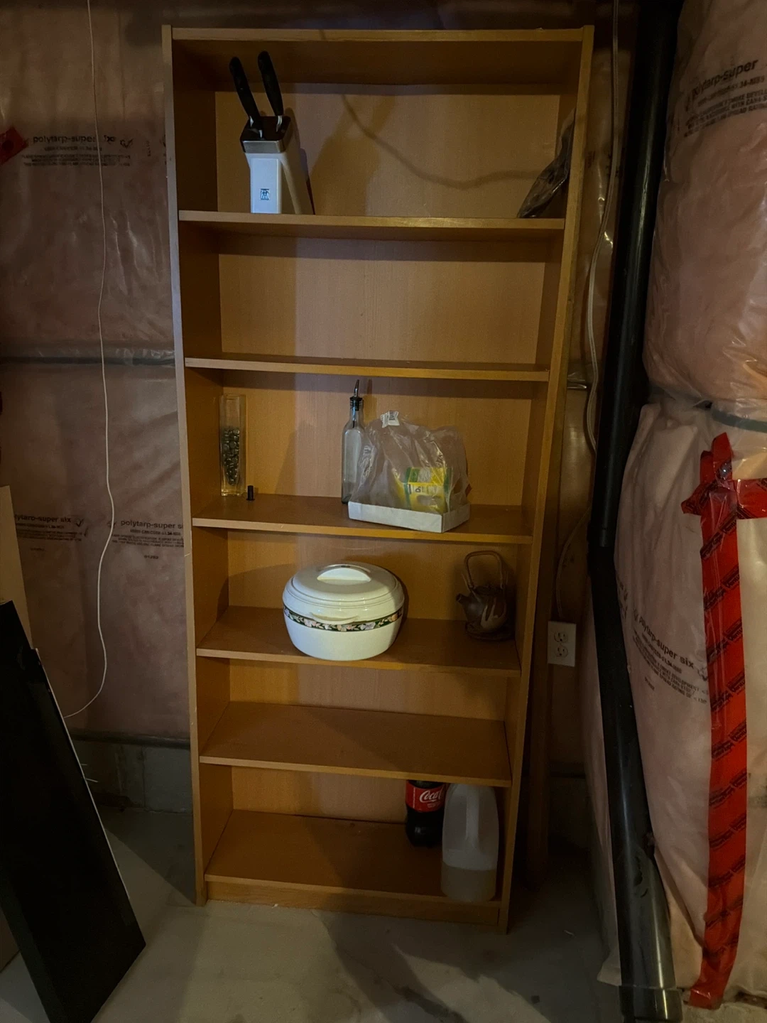A sturdy wooden bookshelf with five shelves. It's ideal for storing books, decor, or other household items. The light wood finish fits well in most rooms.